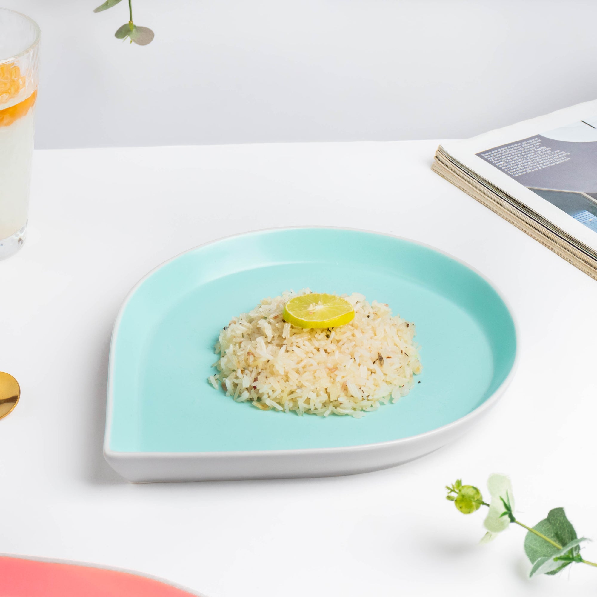 The ceramic teardrop plate in the shade of tiffany blue exudes class and sophistication in an ultra-modern setup. One can serve appetizers to the guests at a pool party or a housewarming party on the blue plate. The snack plate will double up as a platter and is suitable for any occasion. From Italian to continental to Chinese- one can treat the guests to a variety of cuisines. The snack plate also comes in a pink variant, that can be mixed and matched.