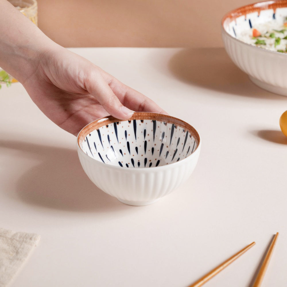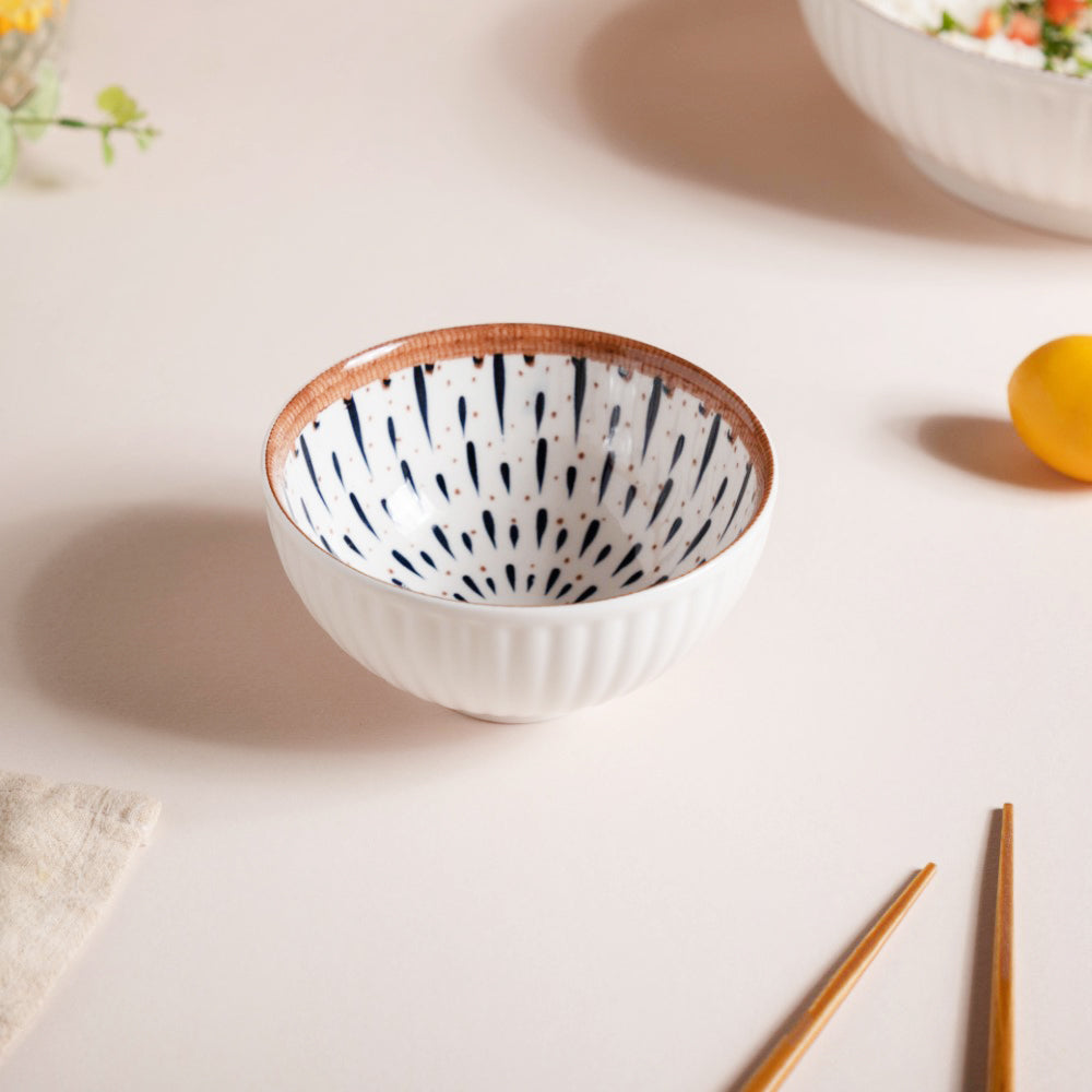 Serve the perfect amount of food in the ceramic bowl that features a beautiful teardrop pattern. The bowl can be the focal point of a party because of its contemporary pattern. Serve ramen, soupy noodles, or one's favourite home-cooked delicacies in the bowl to improve the appearance of the table setting.