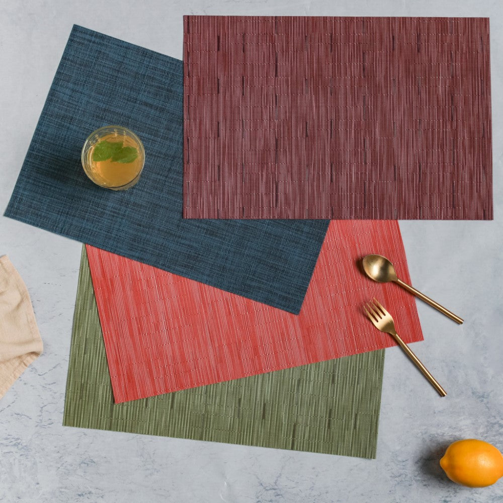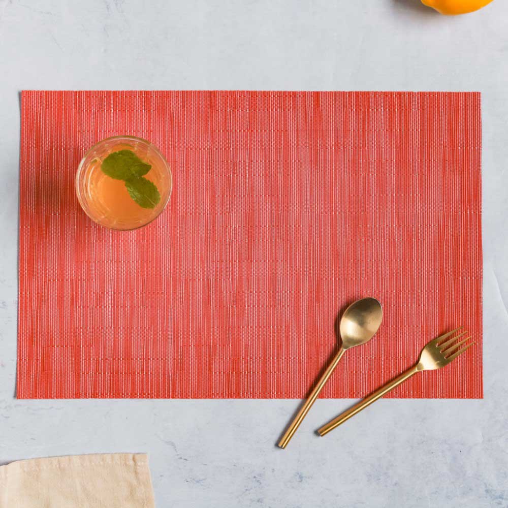 Dinner mat for all day meals in formal and informal settings. The table mat has heat insulation so that one can comfortably relish their hot meals. The texture and pattern of the placemat allows it to be used on a regular basis as well as for special occasions. The mat for dinner can be matched with complementary napkins and cutlery. The table mat for dinner will protect the table from excessive heat and it can also be cleaned and dried easily.