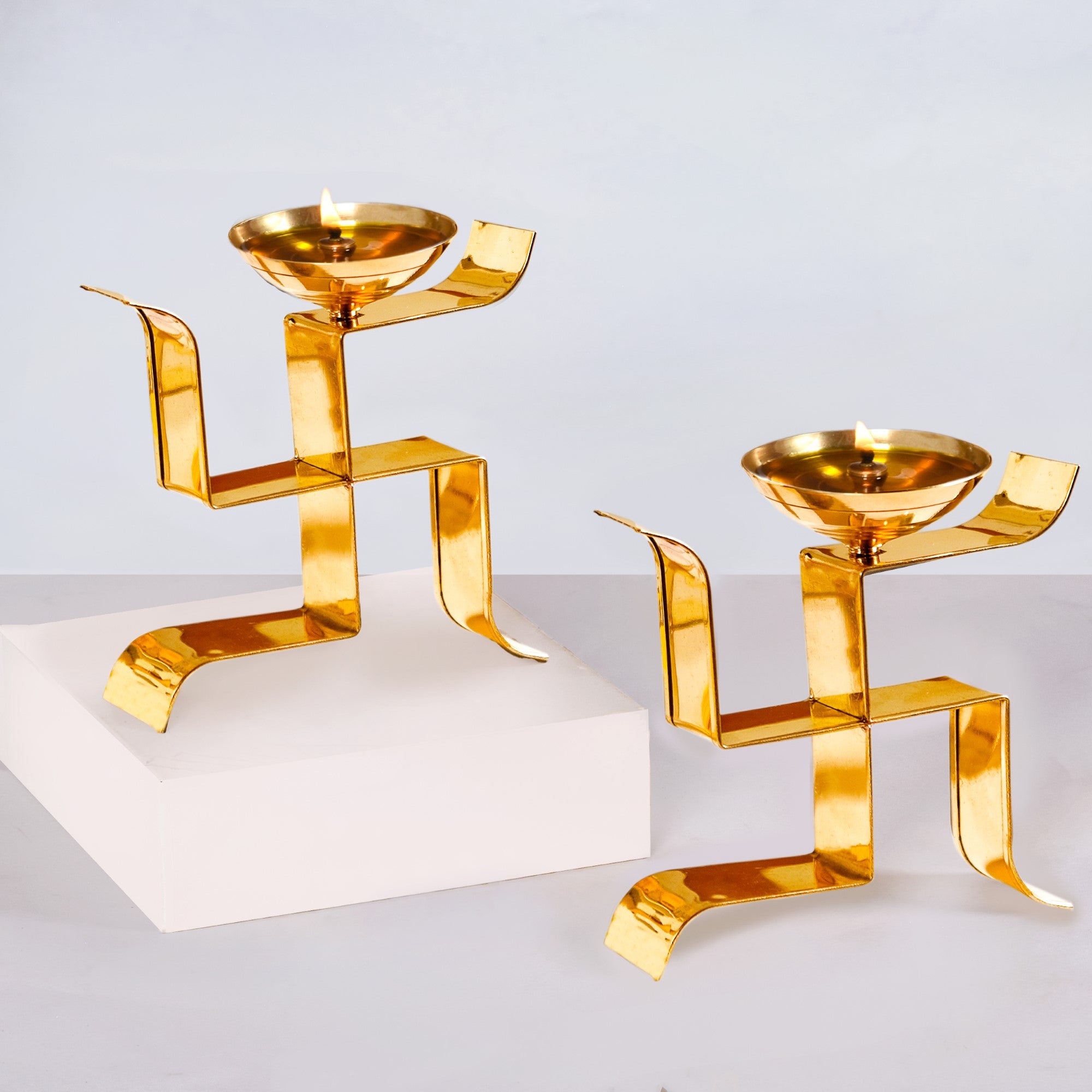Swastik Oil Lamp Votive Set Of 2 Small Gold |