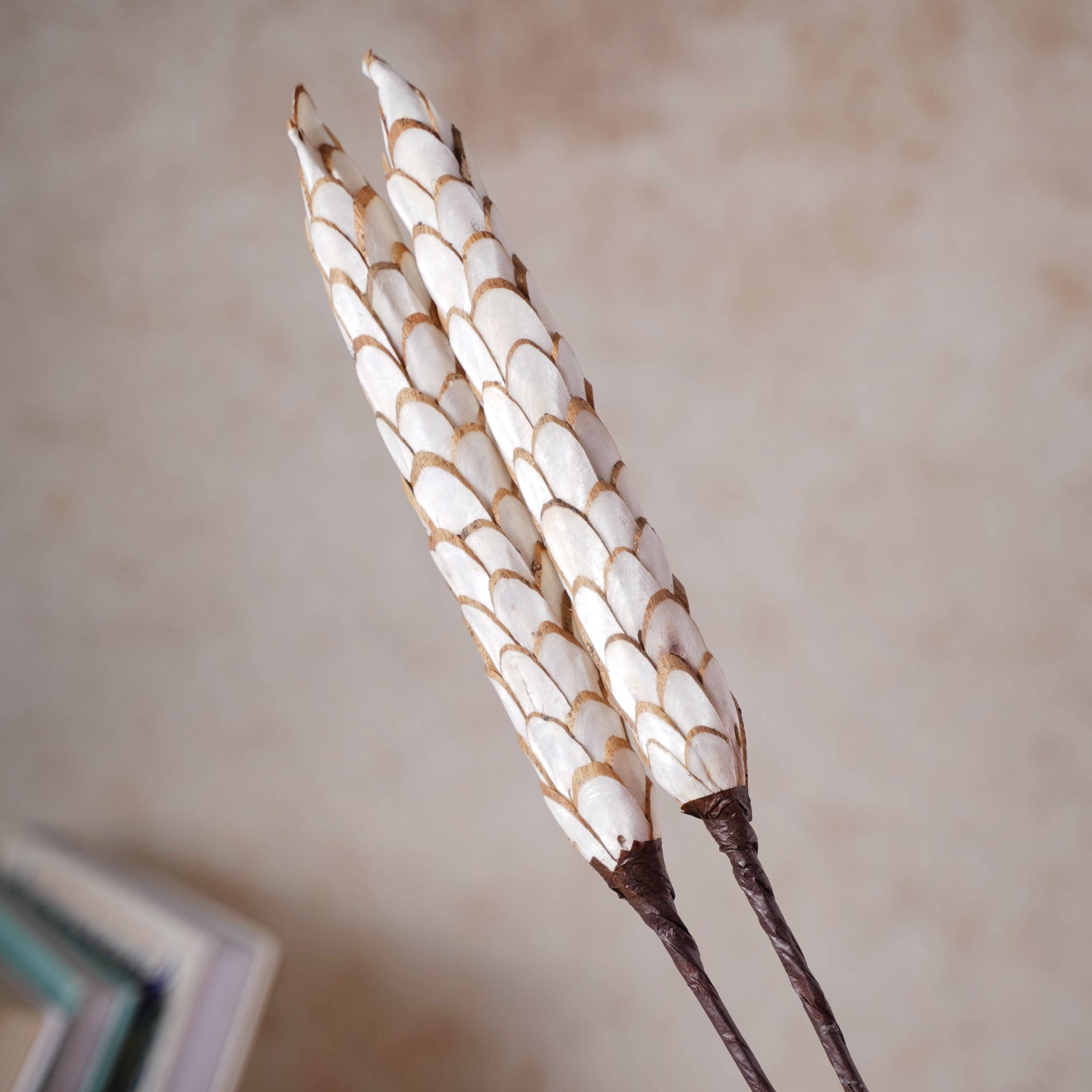 When combined with any type of flower or arrangement, the artificial sola long leaf stick looks polished and enticing. The muted colors of the dried leaf stick were chosen with care to complement both vividly colorful and neutral floral shades. Because of the length of the stem, they may be arranged in both medium and big vases. This set is ideal for adorning any home, table, wedding bouquet, party, or meeting place. The flower stem is conveniently sized for storage and can be dusted with a towel when not in use; the product has gone through several tests to ensure its longevity and visual appeal.