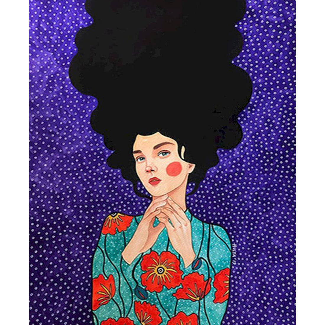 With flowing hair and a deeply thoughtful expression, the girl in blue stares ahead lost in her own thoughts and imaginations.. A portrait that's vibrant and meaningful with a sense of ambiguity, can be brought to life to decorate one's home with the DIY painting kit.