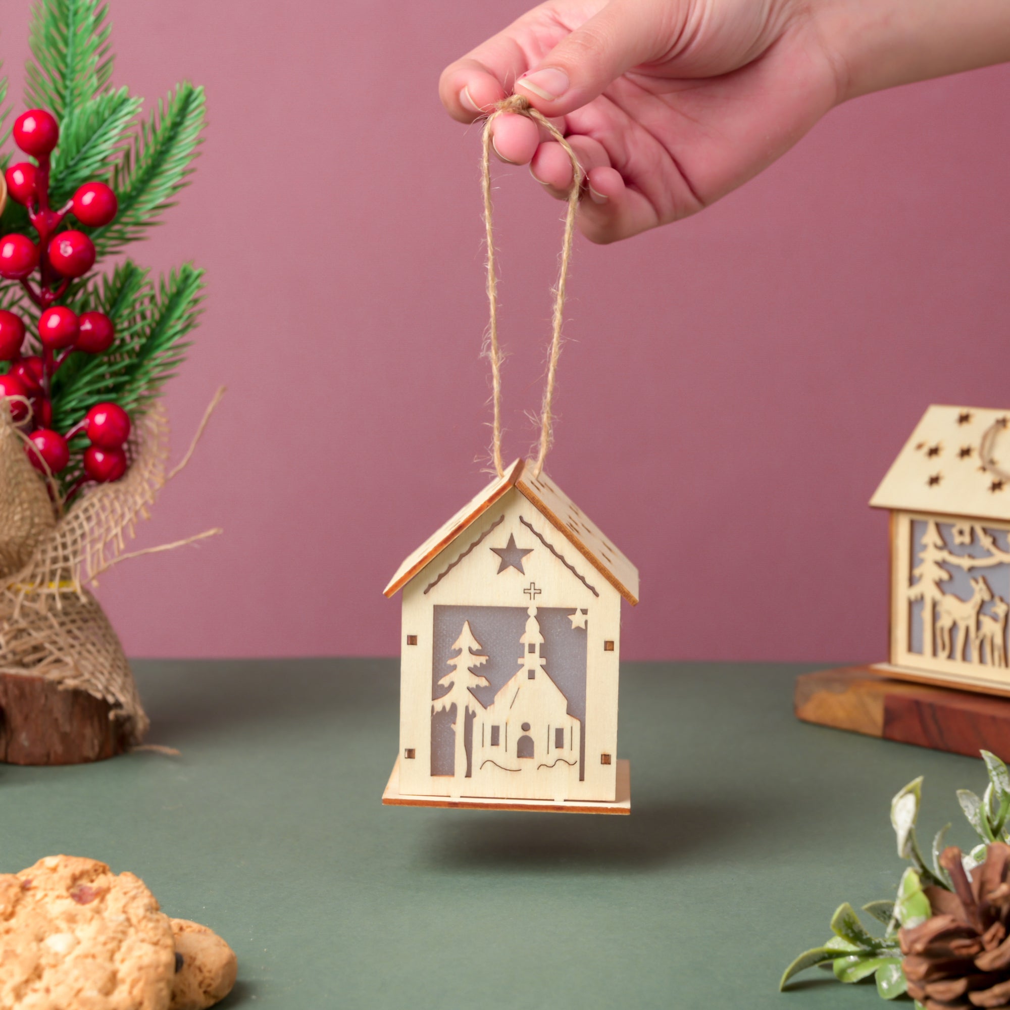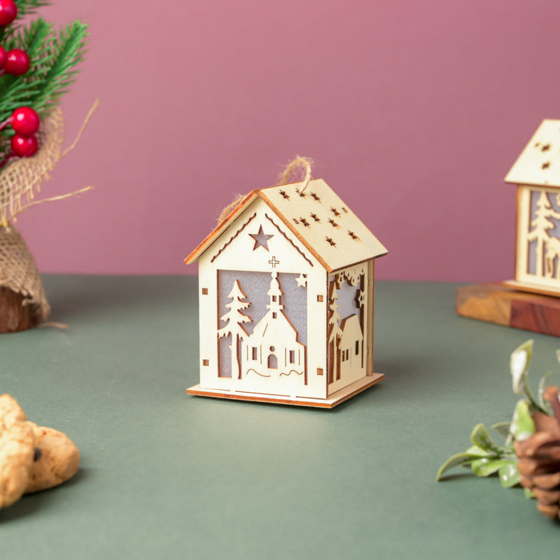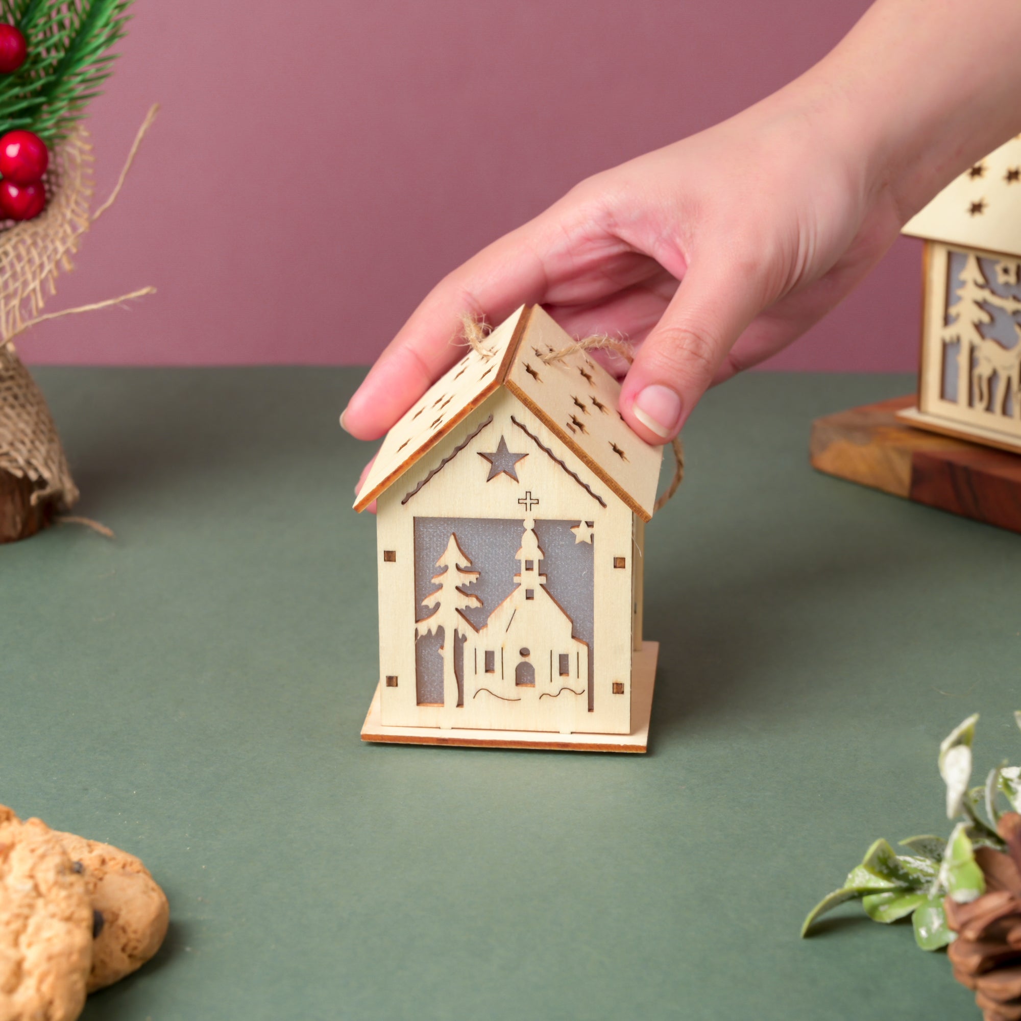 The DIY wooden house decor showpiece is handcrafted to perfection, and comes with a LED light to spread the Christmas cheer in the room. The wooden house is made with great attention to detail with a soothing merry vibe and is bound to bring some holiday cheer and festive warmth into the house. The added luminous effect makes it all the more of an enticing addition to the house. The holiday decor ornament can be used as a showpiece or placed on a bedside table or on a hanging shelf.