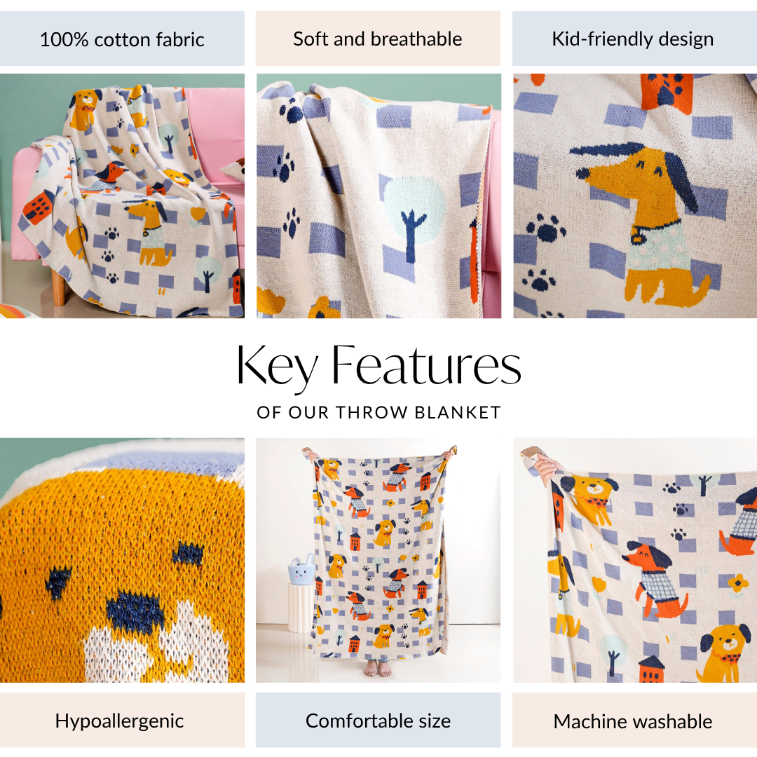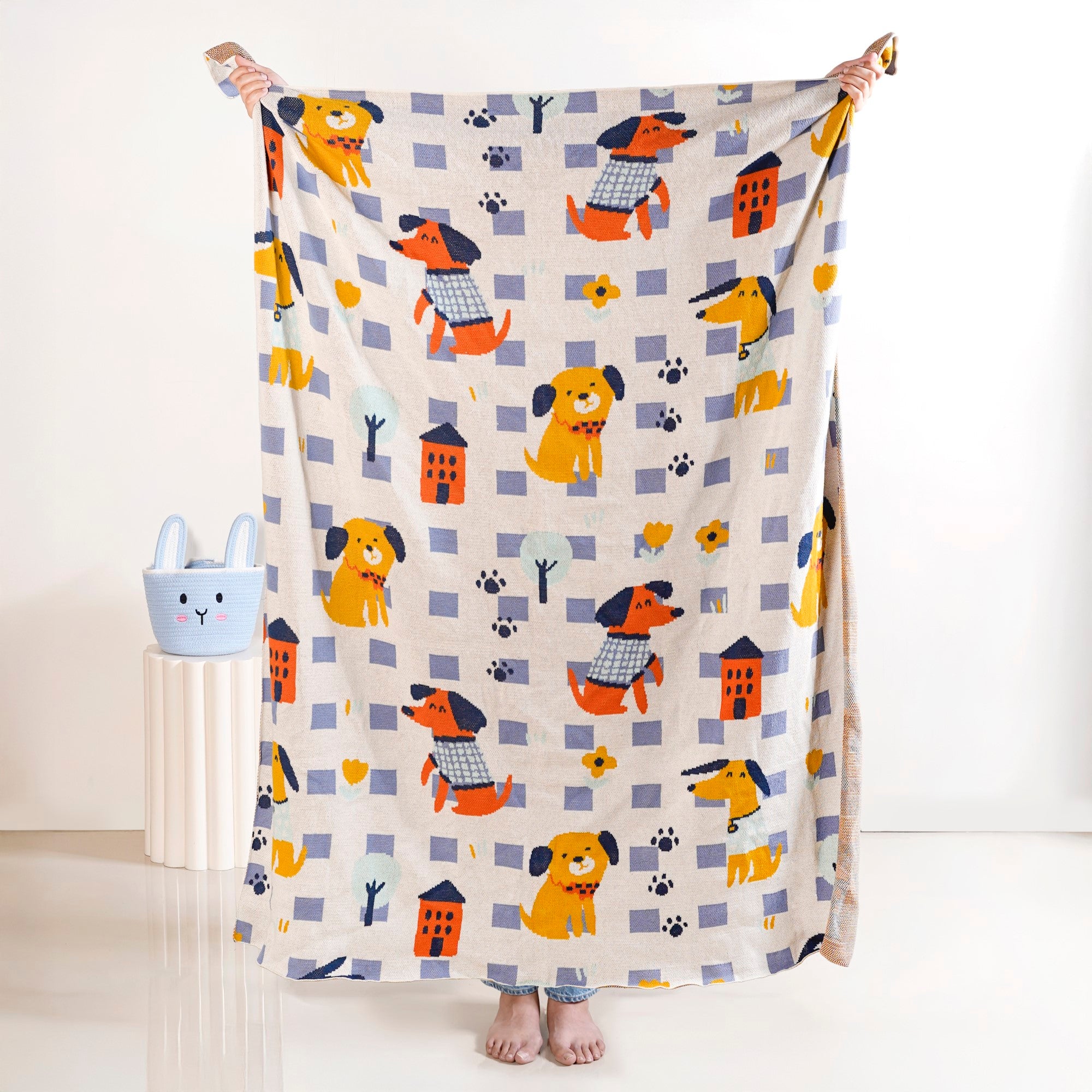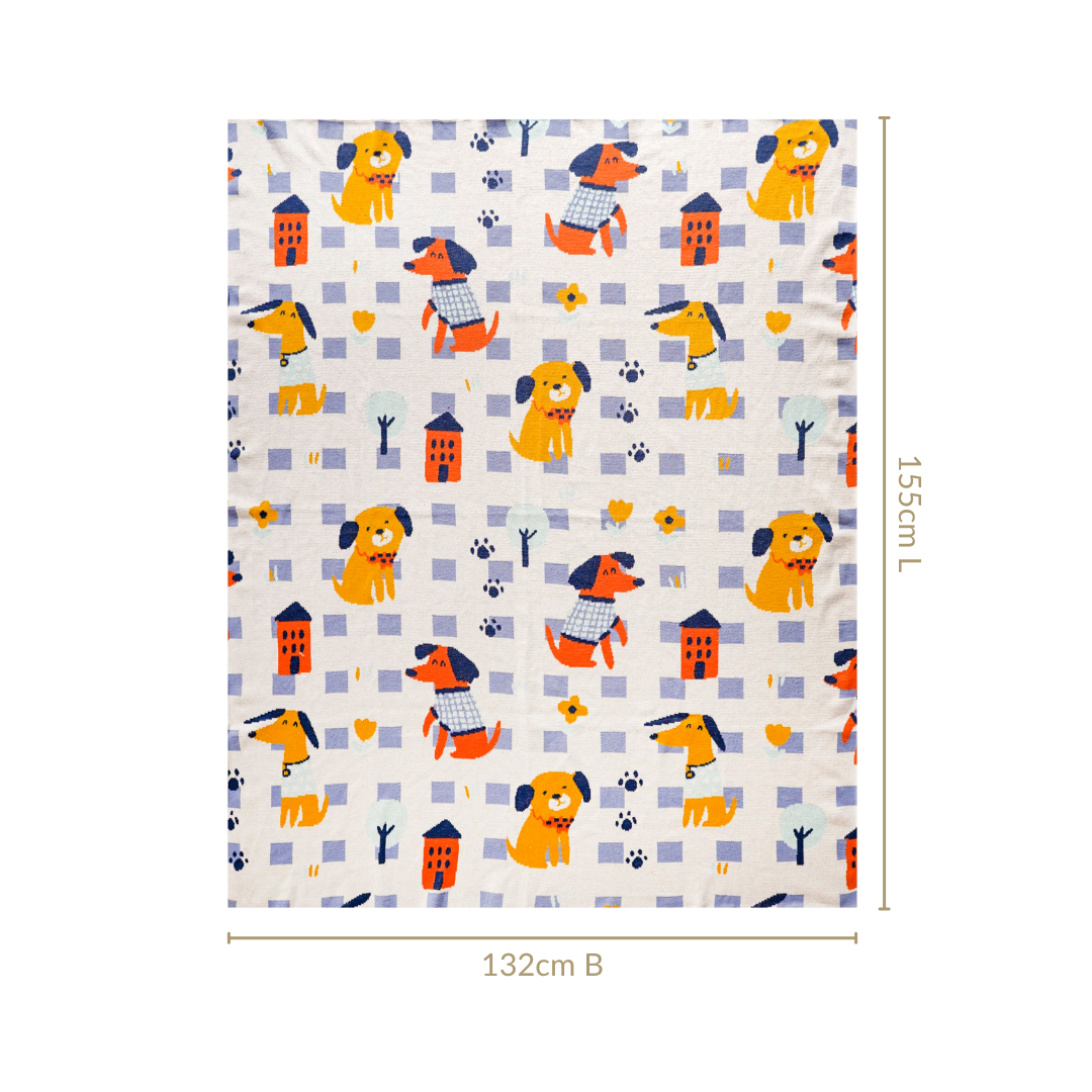 Dog Park Knitted Cotton Throw Blanket For Kids 155x132cm