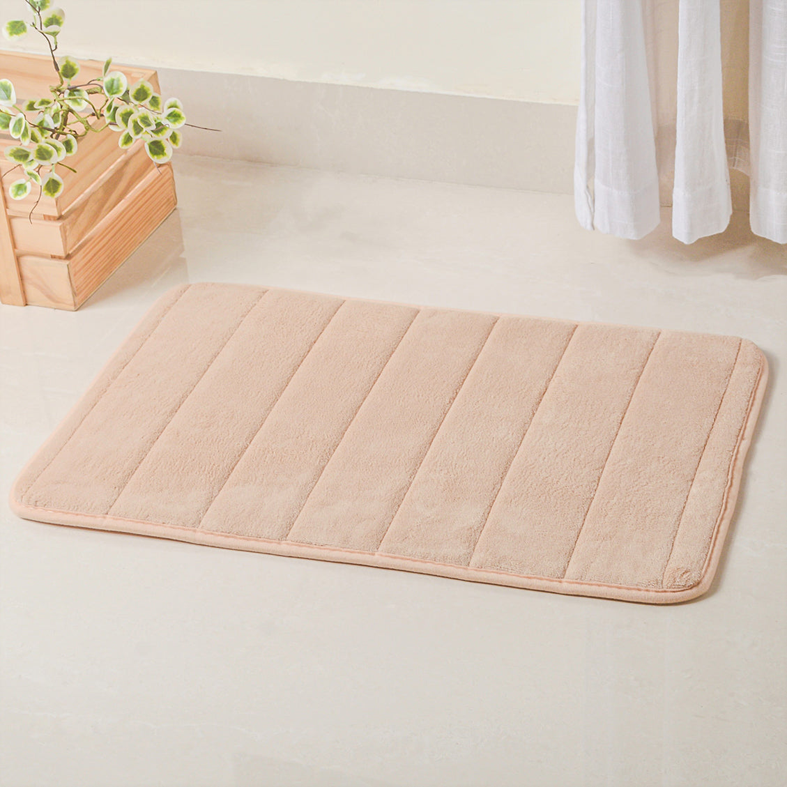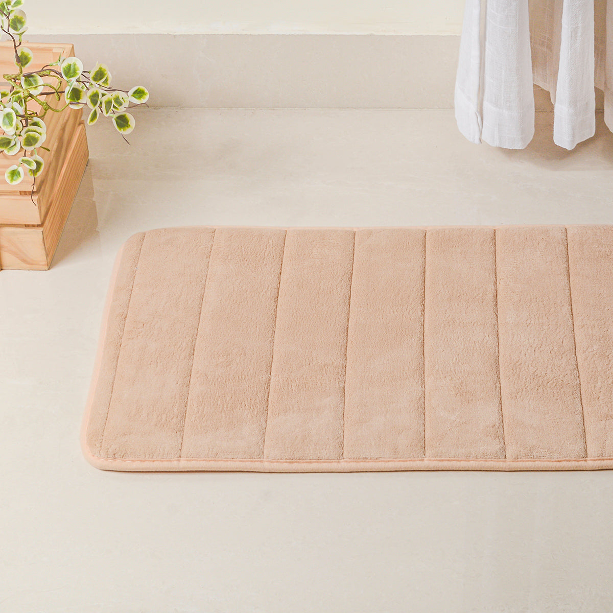 The beige floor mat in a light and neutral shade is finely crafted in wool and has a soft and feathery texture which makes it an excellent choice for a bathroom mat. One can even use the rectangular mat as a bedside carpet or doormat for wiping the feet clean or simply to adorn the space. The rug can be cleaned by both machine-wash and handwash, although handwash is recommended for longer durability.