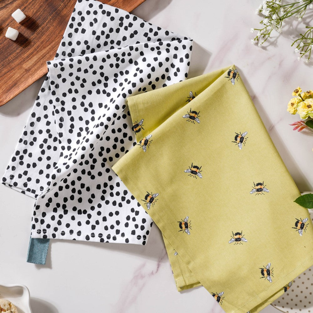 Dots and Bees Printed Cotton Tea Towel Of 2