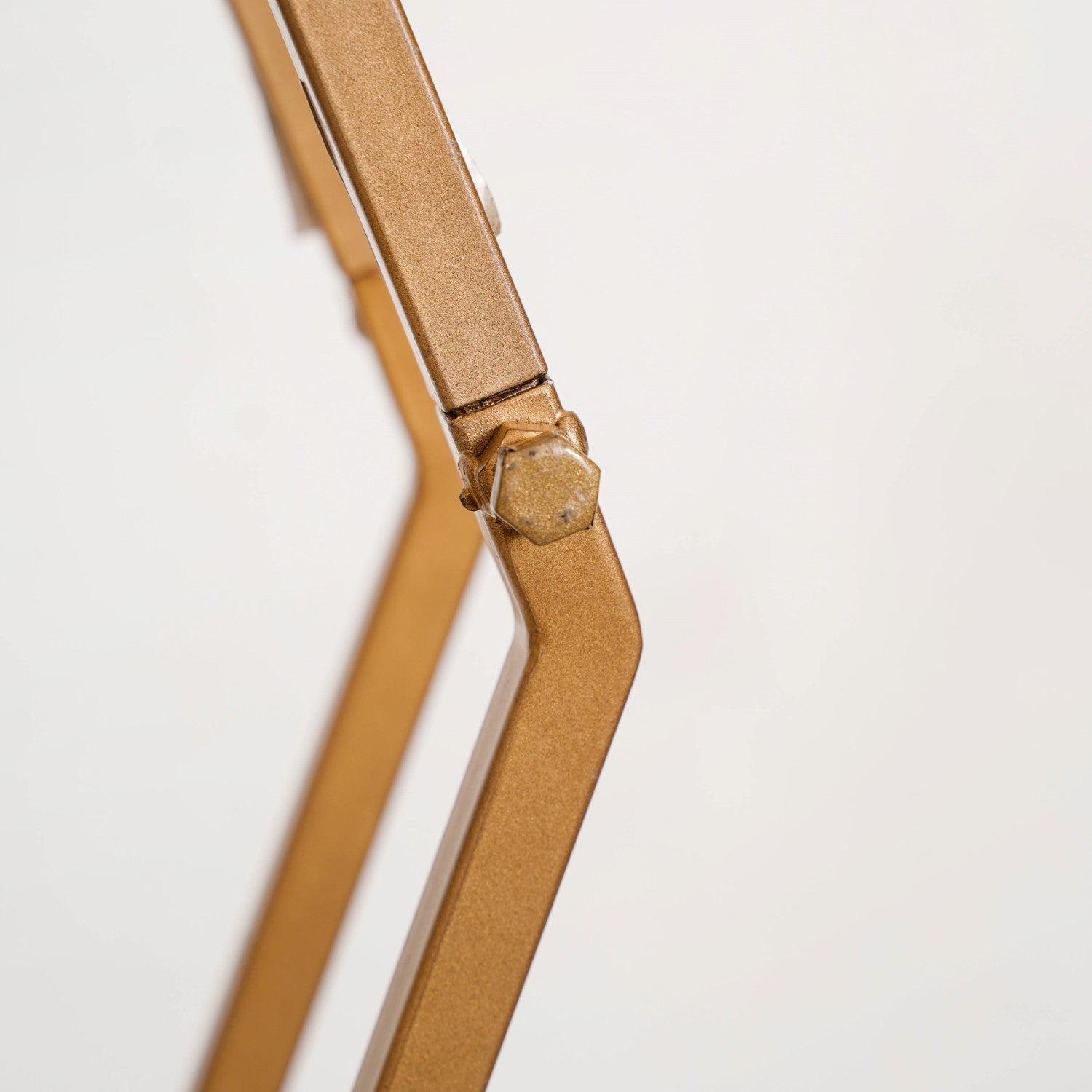You can wrap string lights or fairy lights around the hexagons of the backdrop frame to create a soft, glowing effect. Hanging lanterns or LED candles from the frame can add a touch of warmth and elegance. For a more dramatic effect, use spotlights or uplights at the base of the frame to highlight the decorations and create shadows for added depth.
