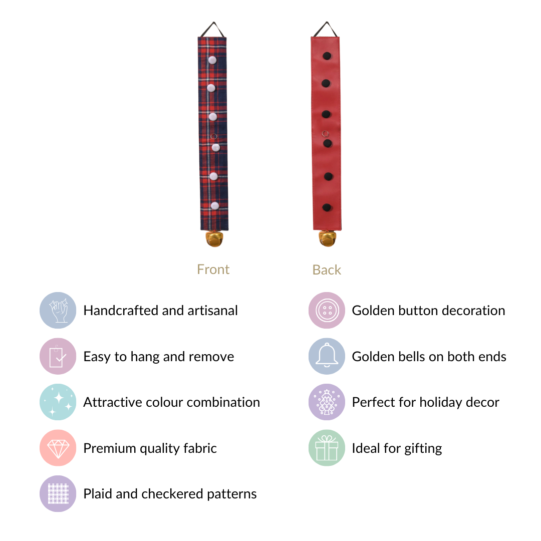 This Christmas hanging is crafted with premium-quality fabric, ensuring durability for years to come. Its reversible design, featuring vibrant red with black buttons on one side and checkered blue and red with white buttons on the other, offers versatility for different holiday seasons.