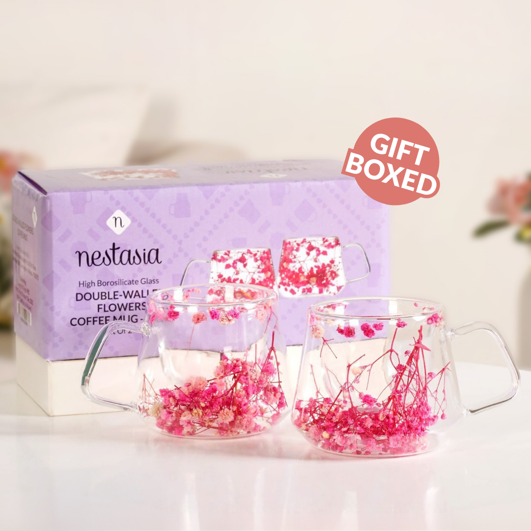 Level up your tea or coffee ritual with these elegant double-walled mugs, where soft pink blooms meet smart insulation in every sip. This set comes in a beautifully packed gift box.