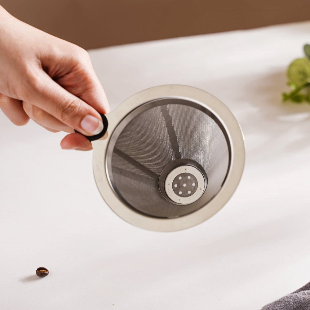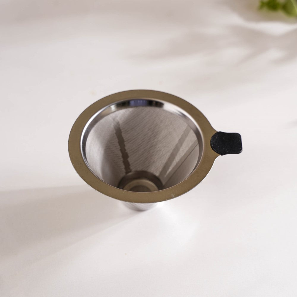 Let the trail of thoughts flow over a cup of freshly brewed coffee. The manual V60 coffee maker filter comes with a silicone grip for holding the filter when the beverage is hot. The steel mesh filter is perfect for a warm cup of cappuccino, latte, or espresso.