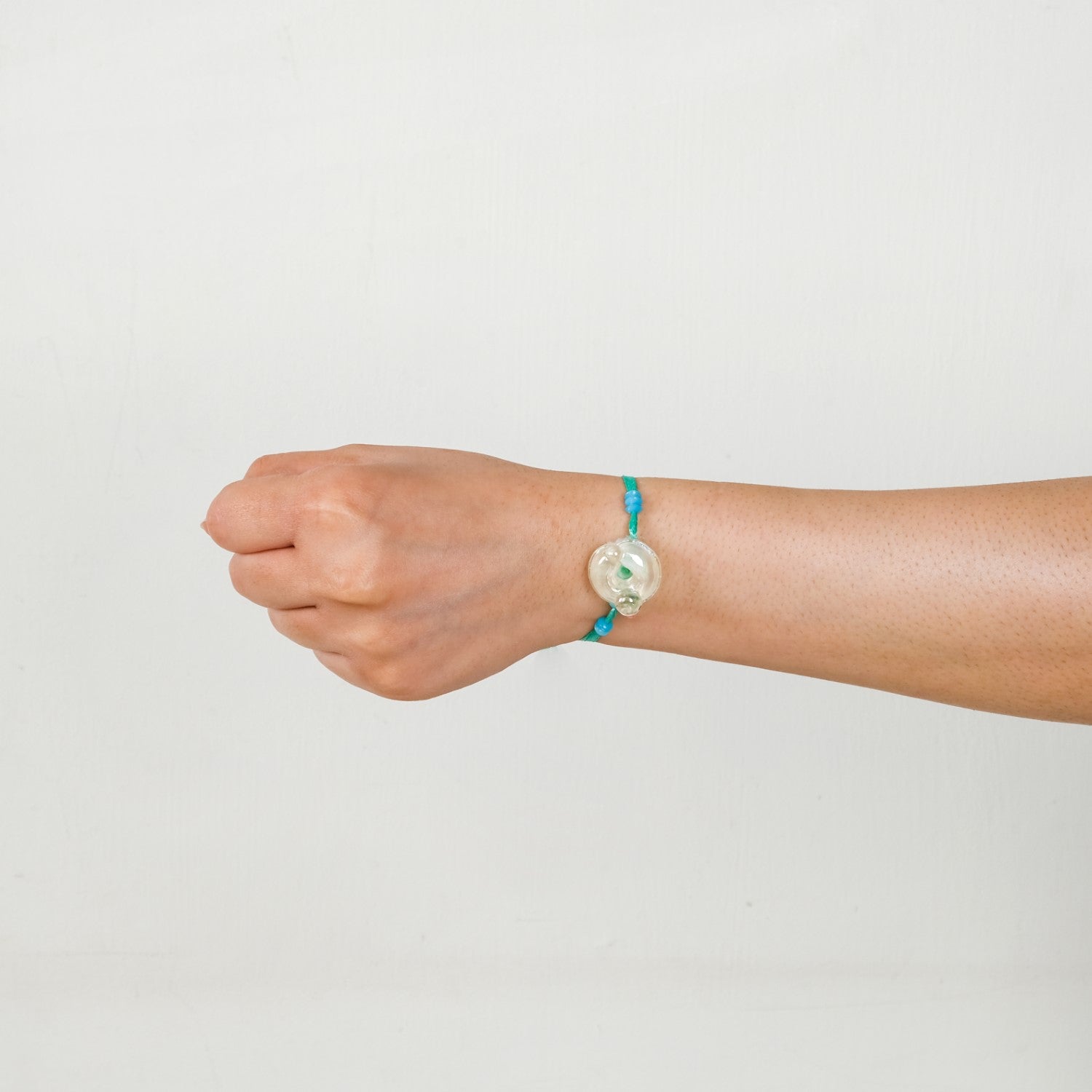 Make this Rakhi unforgettable with our pool party duck Rakhi band. It is made of long-lasting PVC material, inspired by the iconic inflatable pool ducks. It is attached to a green ribbon with three blue beads on both sides of the duck to bring in the summer feeling. It includes 1 Rakhi, 1 dry fruits packet, and 1 roli chawal bottle set.
