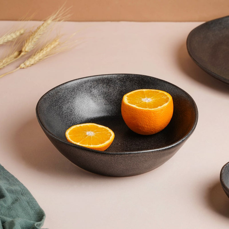 Earthen Stoneware Serving Bowl Matte Black 900 ml