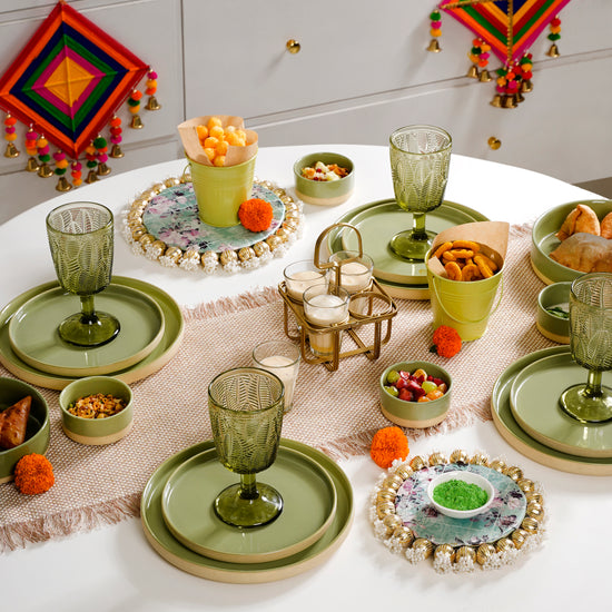 Entertaining guests has been made easier with this ceramic dinner set. Its sophisticated and minimal dual-toned design adds a touch of elegance and versatility, complementing a wide range of table settings. The comprehensive dinner set, which includes dinner plates, snack plates, serving bowls, and side bowls, provides all the pieces needed for a multi-course meal, enhancing its suitability for formal gatherings.