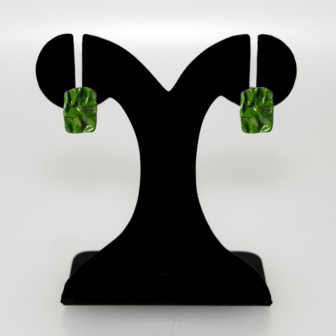 Make a chic statement with these green stud earrings, designed to captivate. The unique, asymmetrical texture is inspired by the natural formations of sedimentary rocks, showcasing the raw beauty of irregularities and depth found in nature. The rich green hue brings a refreshing touch, making them versatile enough for both casual and elegant styles. Lightweight and comfortable, these studs are perfect for adding an earthy, sophisticated flair to any outfit, appealing to those who appreciate distinctive, nature-inspired designs.