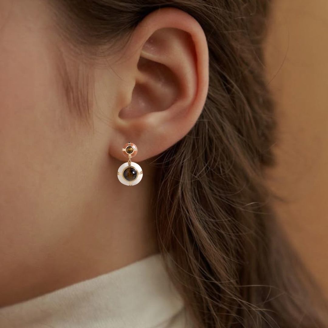Nestyle: Pair these elegant dangle earrings with a soft, neutral-toned blouse and high-waisted trousers for a sophisticated look with a touch of warmth.
