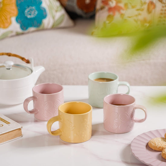 Elevate your daily beverage experience with our multicolour cups set of 8. These cups are more than just drinkware; they are a statement of style and functionality. Crafted from premium ceramic material, each cup boasts exquisite craftsmanship and showcases embossed designs that exude sophistication. The round, non-slip handles ensure a comfortable grip, while the practicality of the cups shines through their chip-resistant feature. Whether it's your morning coffee ritual or an evening tea, these cups enhance every sip. Plus, they are microwave and dishwasher-safe, adding convenience to your life.