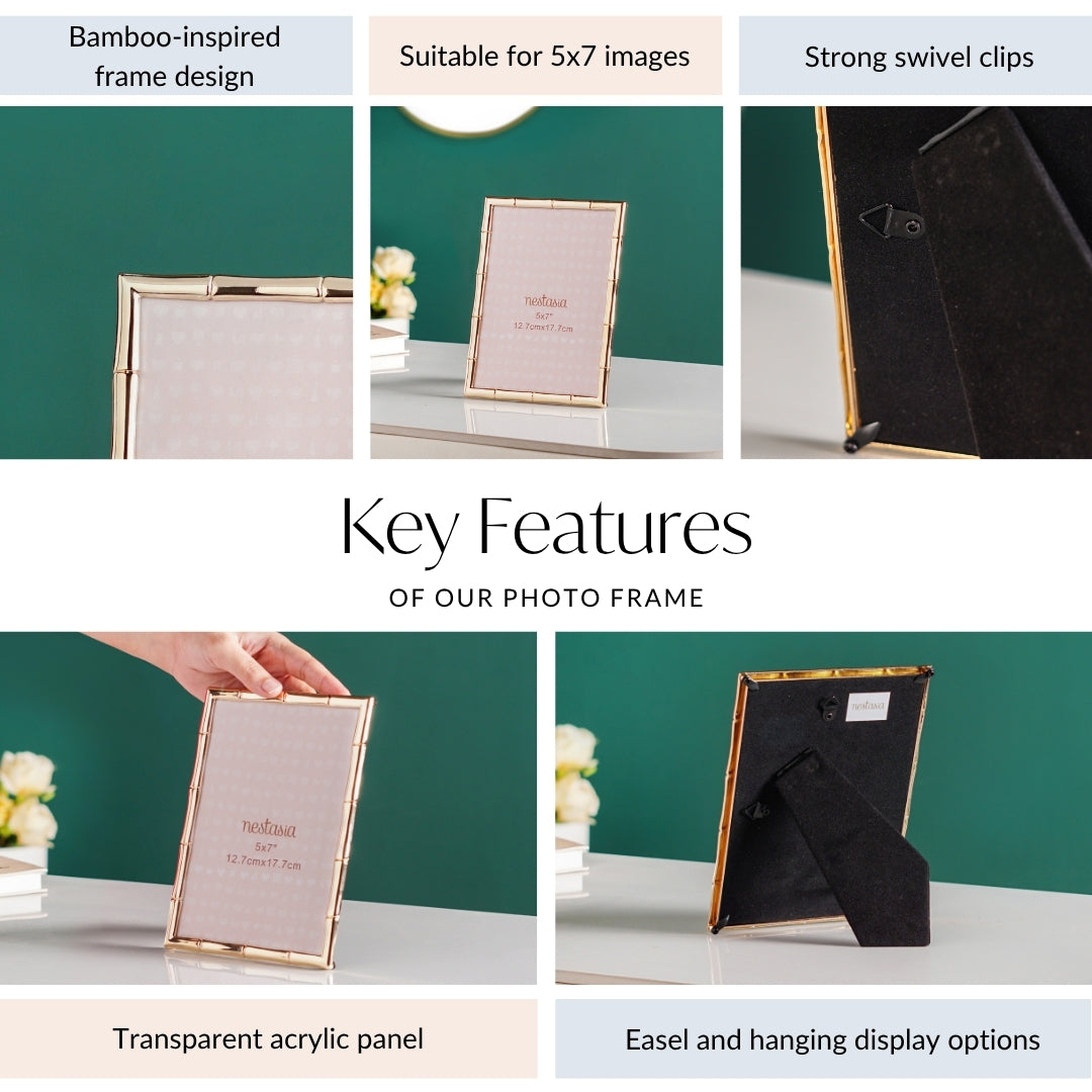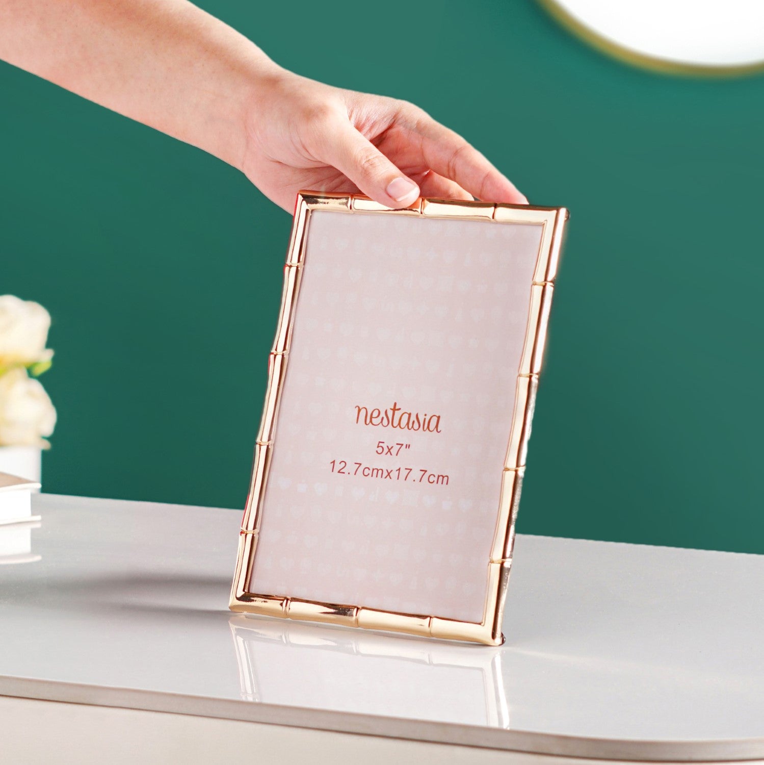 Bring understated luxury to your cherished memories with this bamboo-inspired golden frame. Its sleek finish and design make every photo feel a little more special, effortlessly complementing any space. This frame is perfect for displaying 5x7" photos.