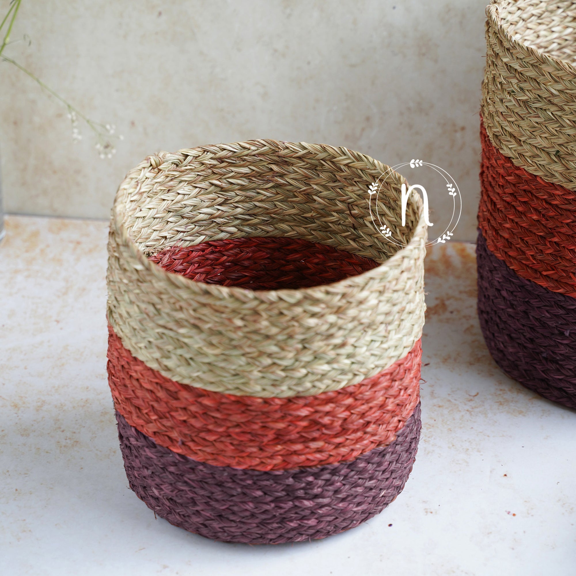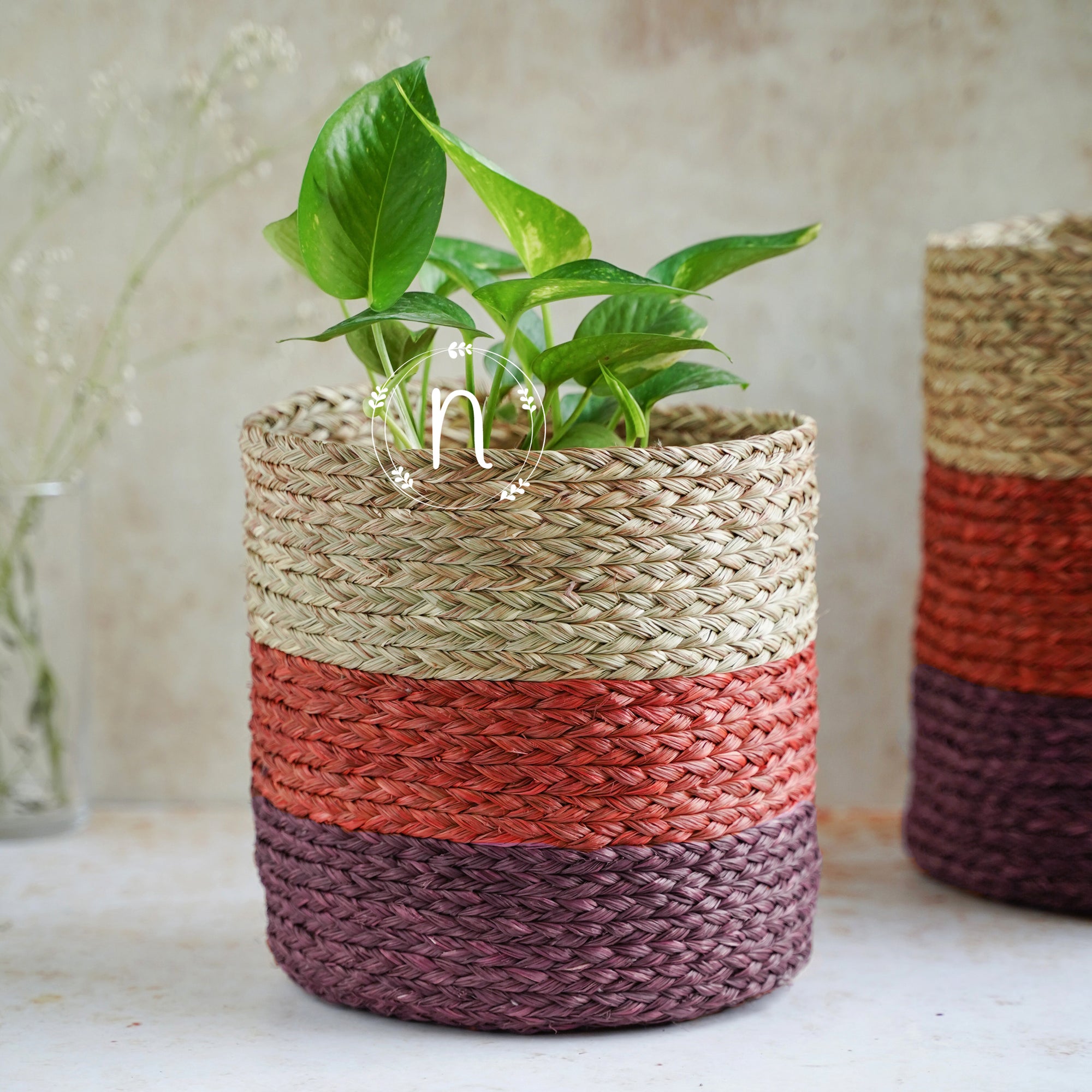 The planter is an intriguing decor addition to any gardening collection, since it is made from eco-friendly genuine Sabai grass. The Sabai planters are available in a three colour scheme, with two brown shades contrasting well with the natural hue of the material. They come in pairs, one big and one small, and are excellent for growing tiny orchids or houseplants, and they also serve as decorative elements on a balcony or a living room space. The plants are not included with the planters.