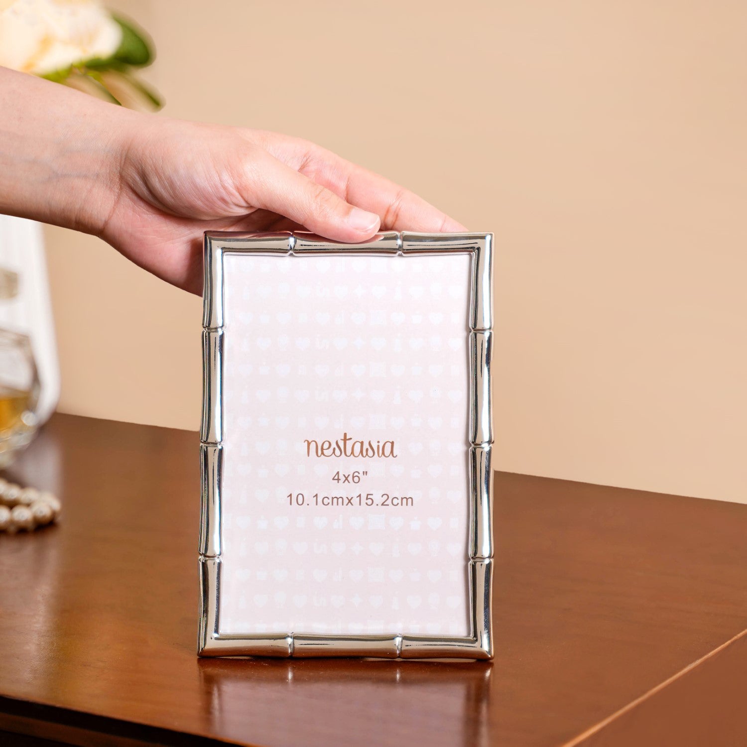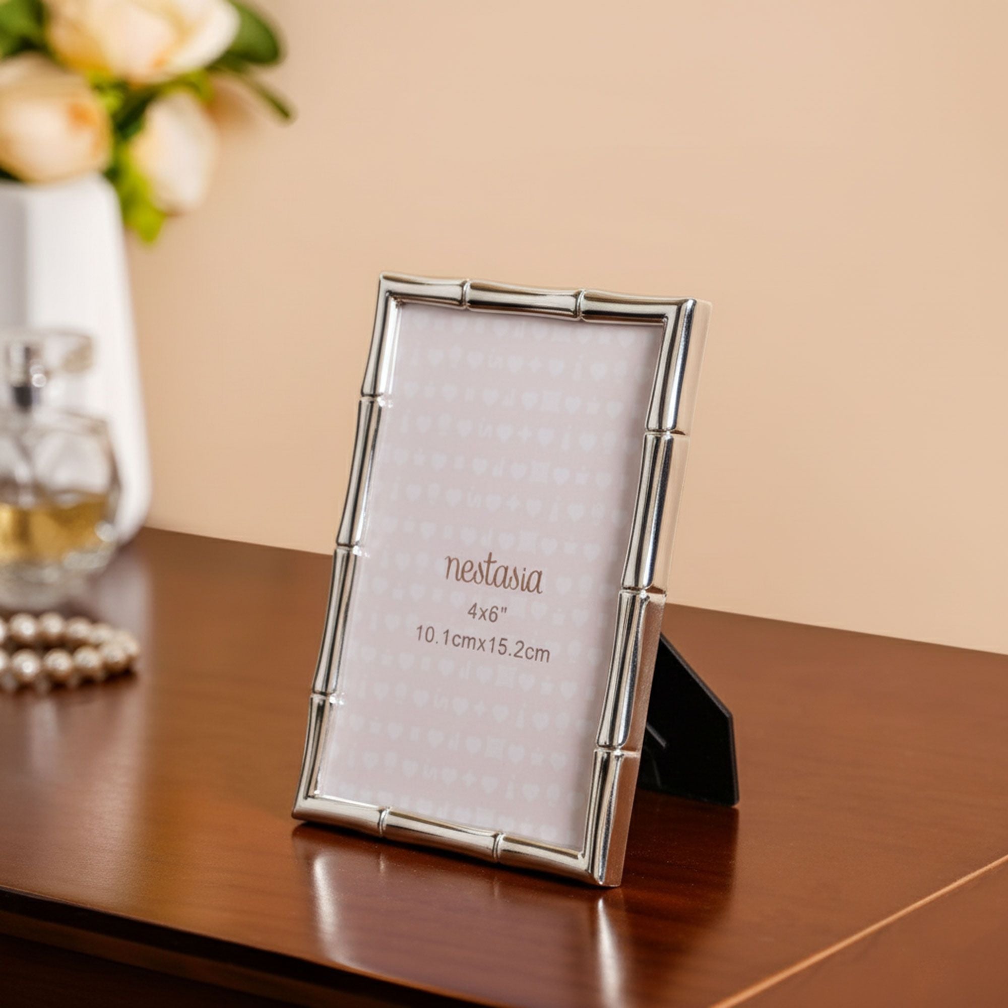 Bring your memories to life with a touch of glam! This bamboo-inspired frame features a sleek silver resin design with delicate ridges and a glossy finish, keeping your photos the star of the show.