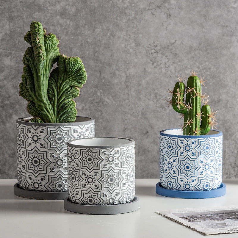 Liven up the living room by planting some air-purifying plants in the round ceramic pots for a graceful look. The geometric design on the outer surface of the pot creates a magnificent look. A bunch of fresh flowers will create a refreshing atmosphere in the interior space.