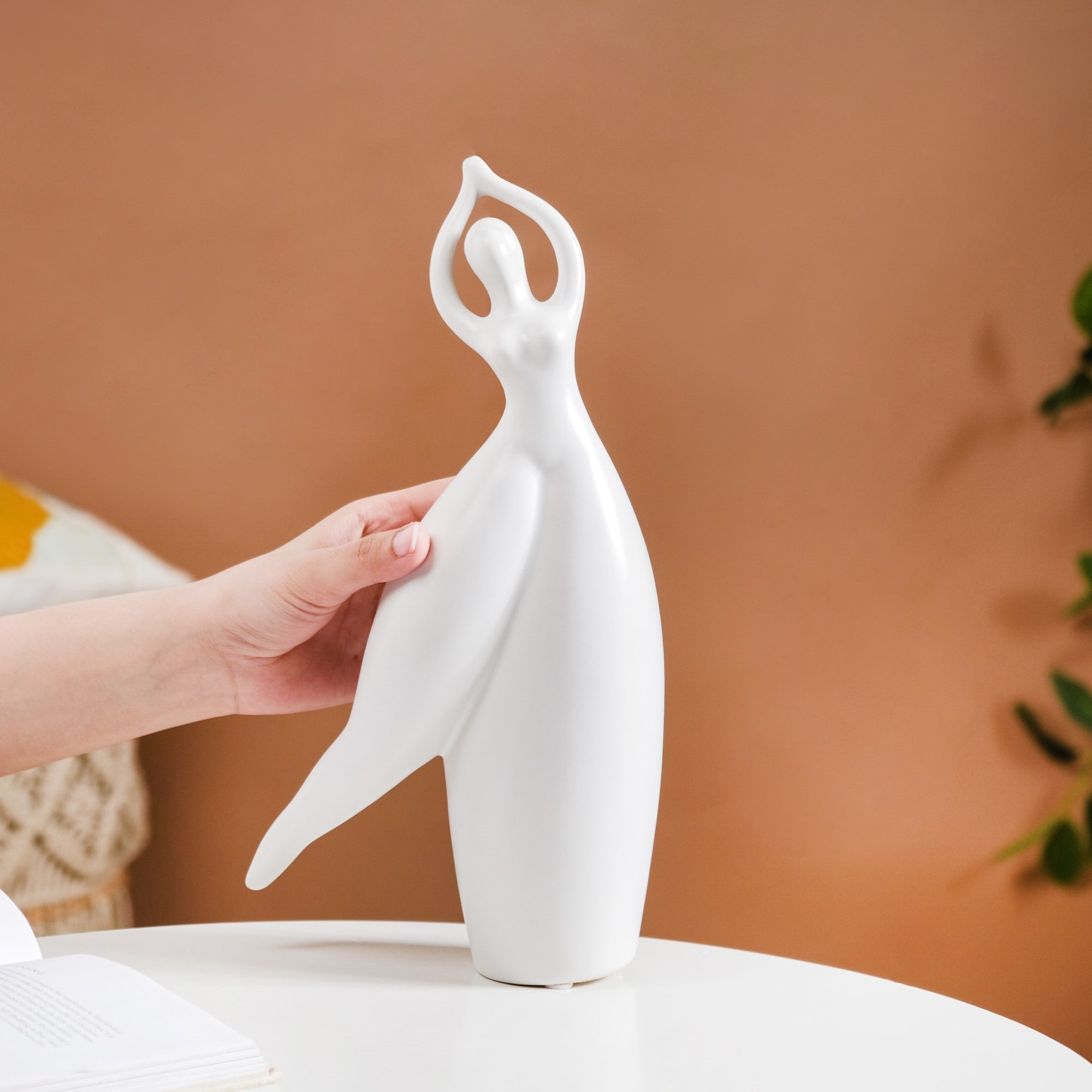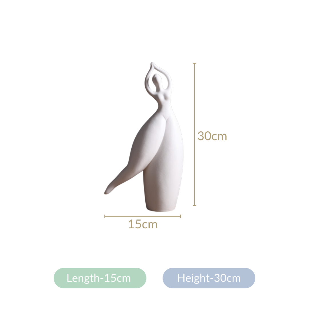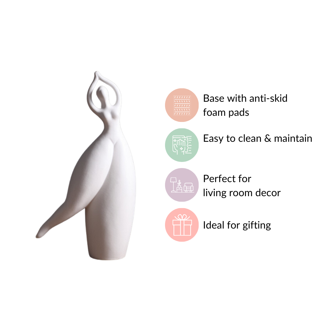 Experience the epitome of elegance with our Elegant Dancer Decor Sculpture. This premium ceramic showpiece promises enduring beauty and durability. With its graceful raised hands, captivating dancing posture, and smooth matte finish, it embodies the essence of contemporary art. The thoughtful addition of anti-skid foam pads on the base ensures stability and easy placement. Cleaning and maintenance are effortless, making it a hassle-free addition to your living room decor. Elevate your space or present a statement-worthy gift with this exquisite sculpture, seamlessly fusing modern style with timeless grace.