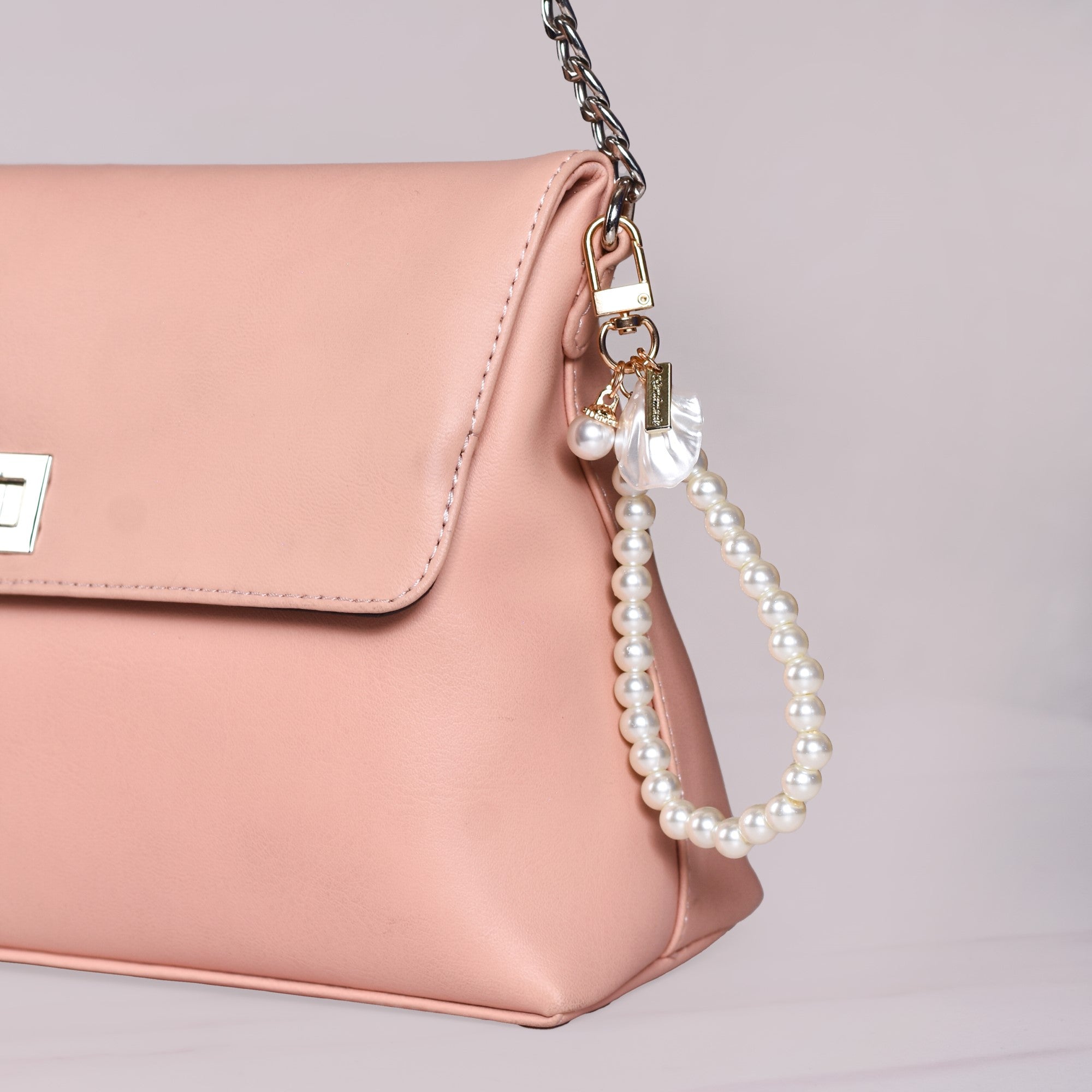 Ever feel like your keys have a mind of their own, always playing hide and seek? Wave goodbye to that game with the faux pearl keychain. Made from high-quality, ethically sourced PVC and metal, this keychain is as durable and eco-friendly as it is stylish. However, it's the design that steals the show. Chic, sleek, and always on fleek, this keychain is adorned with timeless white faux pearls meticulously arranged around its round silhouette. Each pearl reflects light with a gentle shimmer, creating an aura of understated elegance. Adding to its charm are carefully crafted details: a miniature oyster shell charm that evokes seaside serenity, a gold-coloured 'handmade' tag that speaks to its artisanal craftsmanship, and a single pearl delicately suspended from a sophisticated gold attachment. Furthermore, the keyring paired with a matching clasp, ensures your keys are always within reach and never lost in the abyss of your bag. So, what are you waiting for? Add this to your cart so you can always keep your keys secure and your style on point!