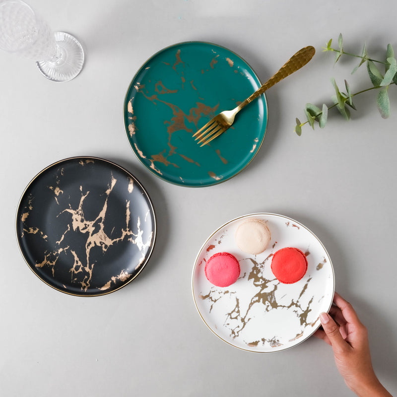 The ceramic snack plate looks classy on any table setting. The snack plate with gold design is durable and therefore perfect for daily use. Add some spunk and style to the dining table with the round plate, fetching compliments from guests.