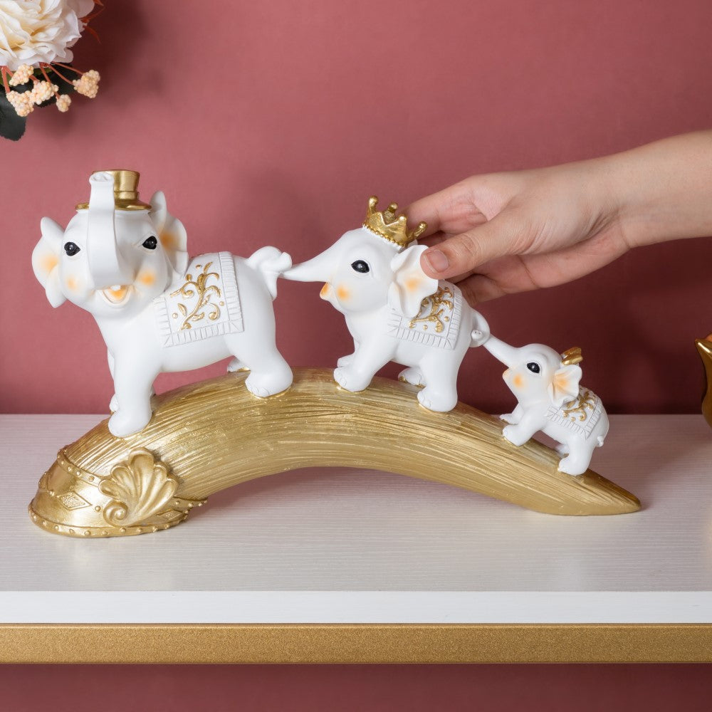 The Elephant Family Decorative Showpiece in White comes as a set featuring a family of three elephants, in varying sizes. This beautifully crafted decor piece showcases the essence of an elephant family and is designed to be displayed as a cohesive unit. You cannot purchase individual pieces.