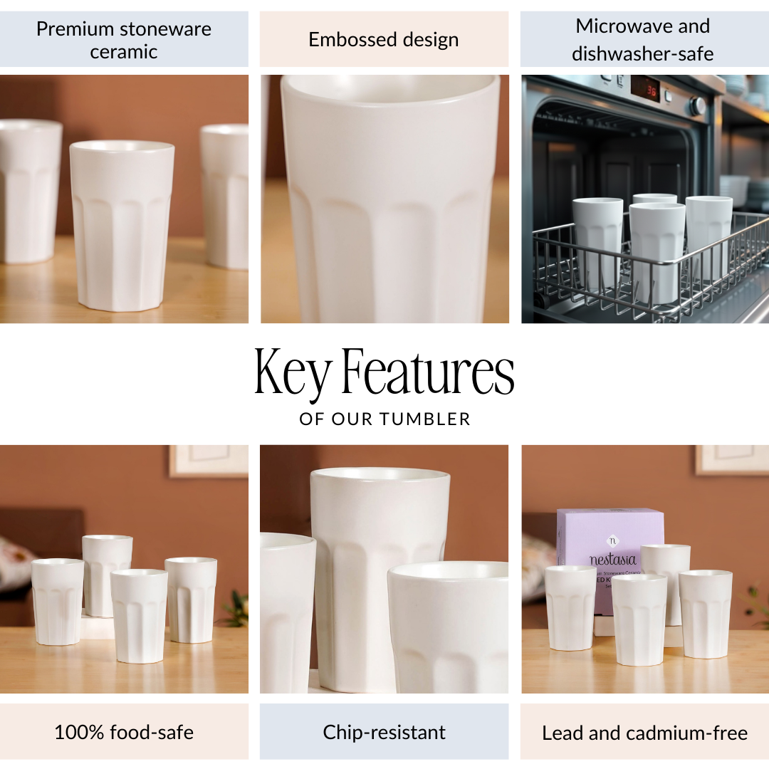 Embossed Cannoli Cream Ceramic Tumbler Set Of 4 380ml