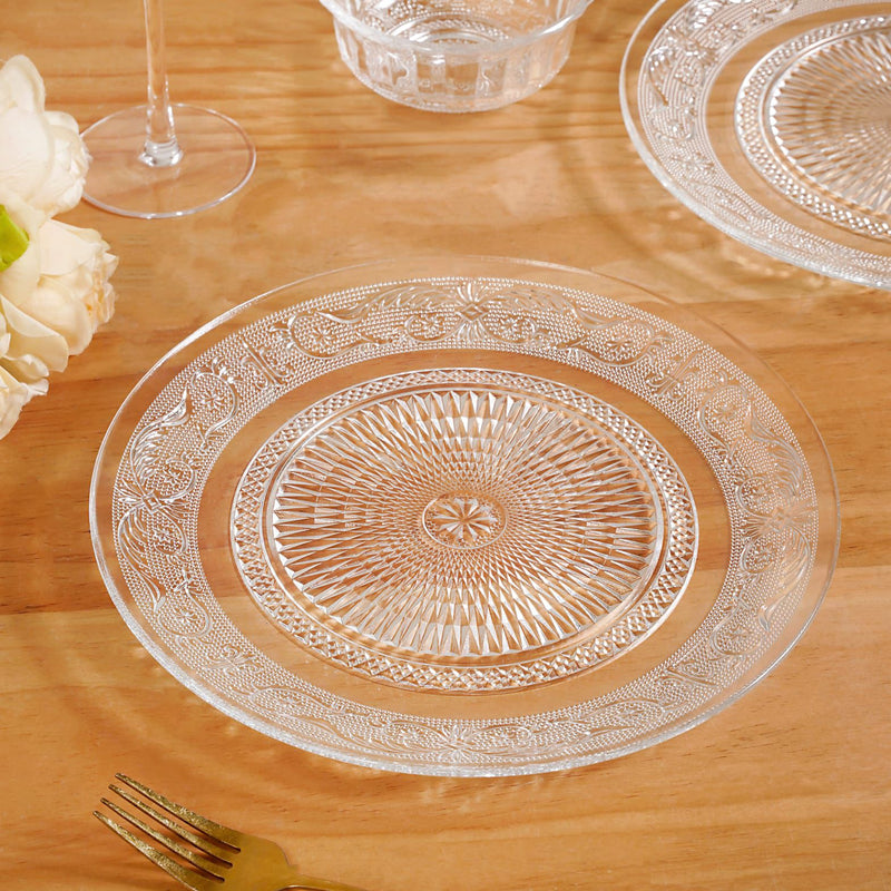 Upgrade your dining experience with this elegant dinner plate set, crafted to serve every meal in style. These glass plates bring together style and everyday functionality for a refined table setting.