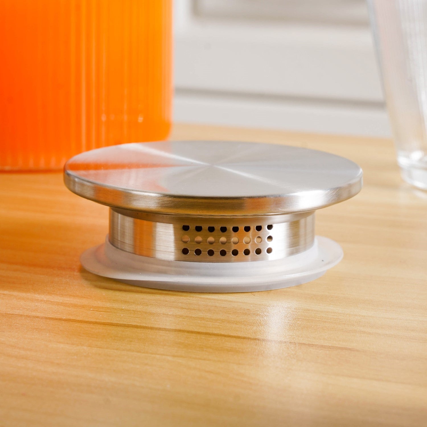 Benefits: Designed for daily use, this pitcher and cup set offers durability with a touch of retro charm. Both the jug (without the lid) and the six cups are dishwasher safe for easy cleaning. Ideal for hot or cold beverages, the set works just as well for chilled infusions as it does for calming herbal teas. The lid's dual-sided strainer lets you choose between a fine filter to hold back fruits or herbs or a wider opening for a smooth, steady pour. The spout is shaped for drip-free serving, and the handles on both the pitcher and cups are designed for a secure, comfortable hold.