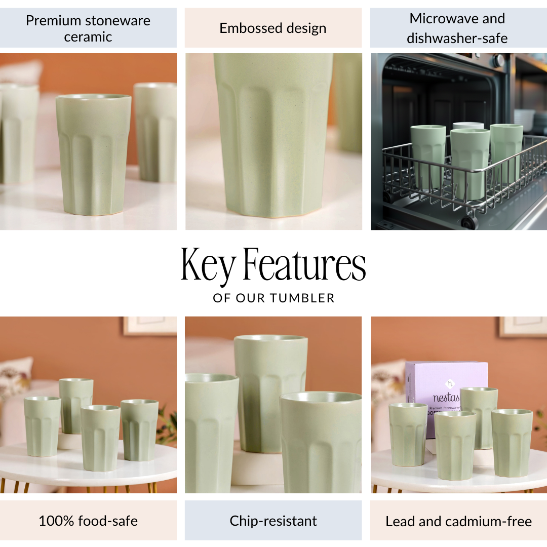 Embossed Sage Green Ceramic Tumbler Set Of 4 380ml