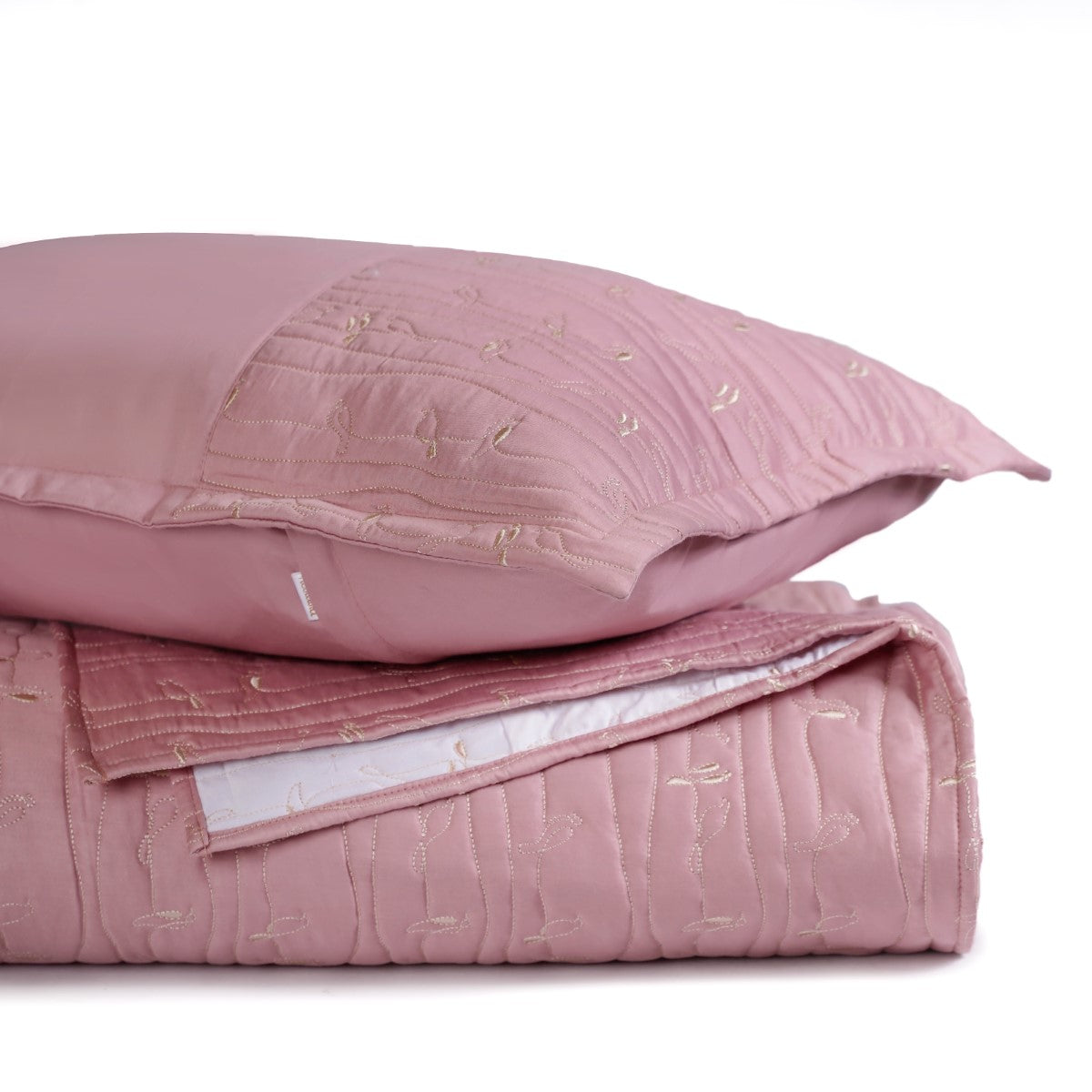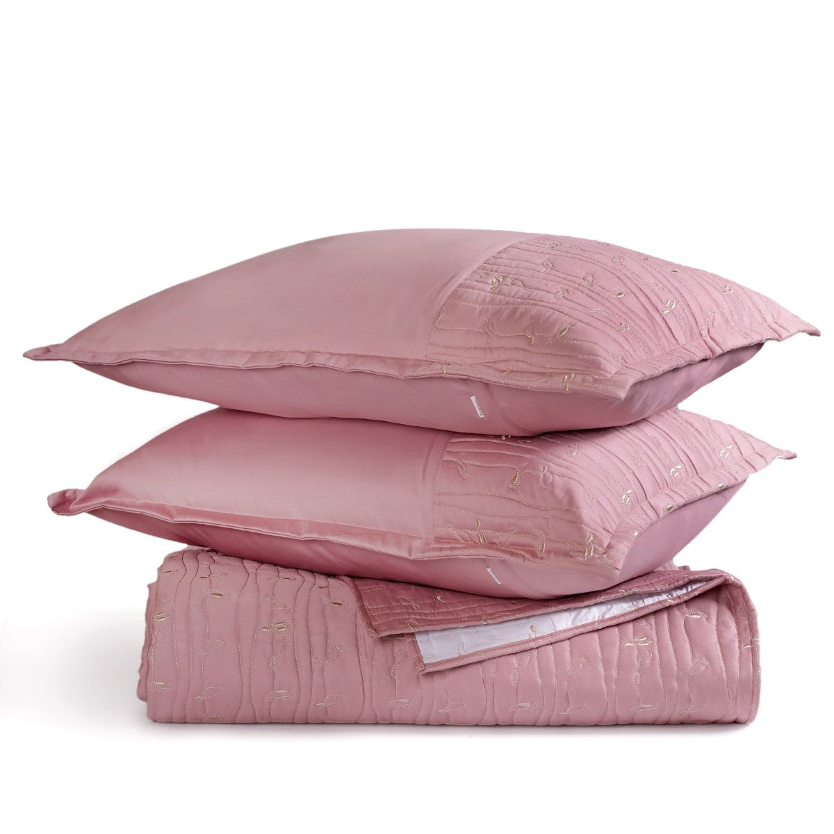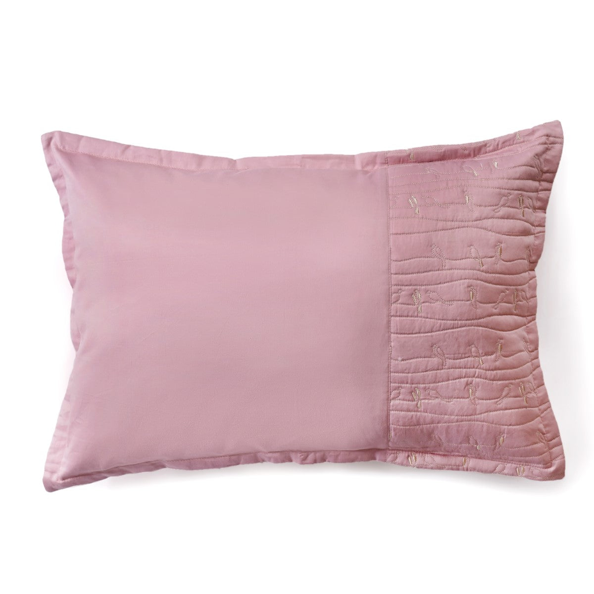 Bring an element of luxuriousness and comfort to your bedroom with the set of 1 king-sized bed cover and 2 pillowcases. The subtle pink hue of the bed cover and pillow cover is soft and sophisticated, making it the perfect addition to any bedroom decor. Crafted from premium quality 100% cotton, our bed cover features intricate embroidered detailing of birds that add a charming and timeless appeal. With a thread count of 300, the cover is smooth to the touch and provides a comfortable sleeping experience. The bed cover features a polycotton backing fabric and interlining of 80 GSM poly fibre sheet, making it durable and long-lasting. The skin-friendly fabric ensures that you get a good night's sleep without any irritation or discomfort. Expertly crafted by skilled artisans, our bed cover is not only visually appealing but also highly functional. The king-sized bed cover and 2 pillow covers, allow you to create a cohesive look for your bedroom.