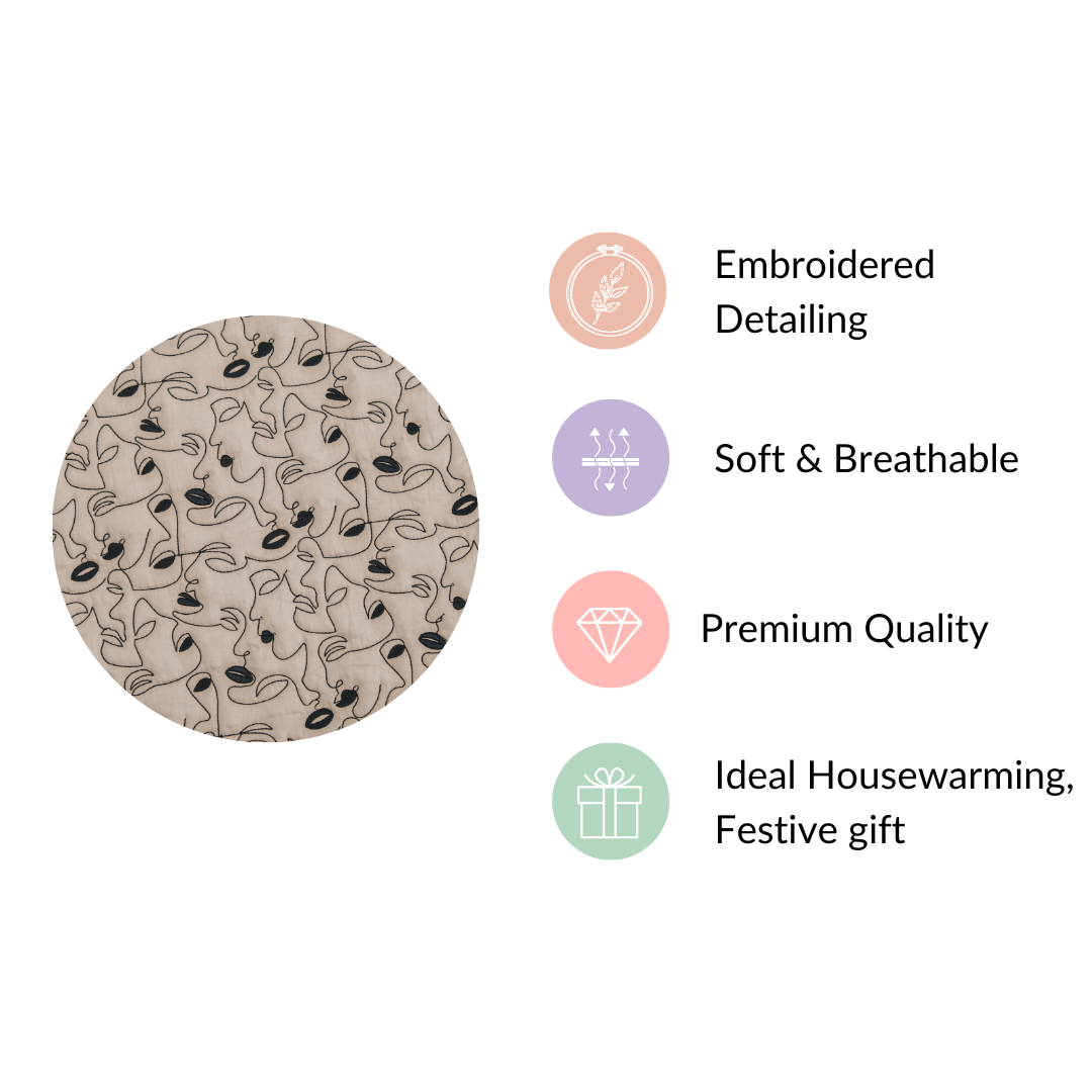 The versatile design of the bed cover set allows it to seamlessly complement both contemporary and traditional bedroom styles. Its elegant hand-embroidered patterns and calming beige colour make it a perfect addition to any decor, adding a touch of sophistication and charm to your bedroom, regardless of its style. Whether your bedroom exudes modern simplicity or classic elegance, the bed cover set will enhance its ambience with a fusion of timeless artistry and style.