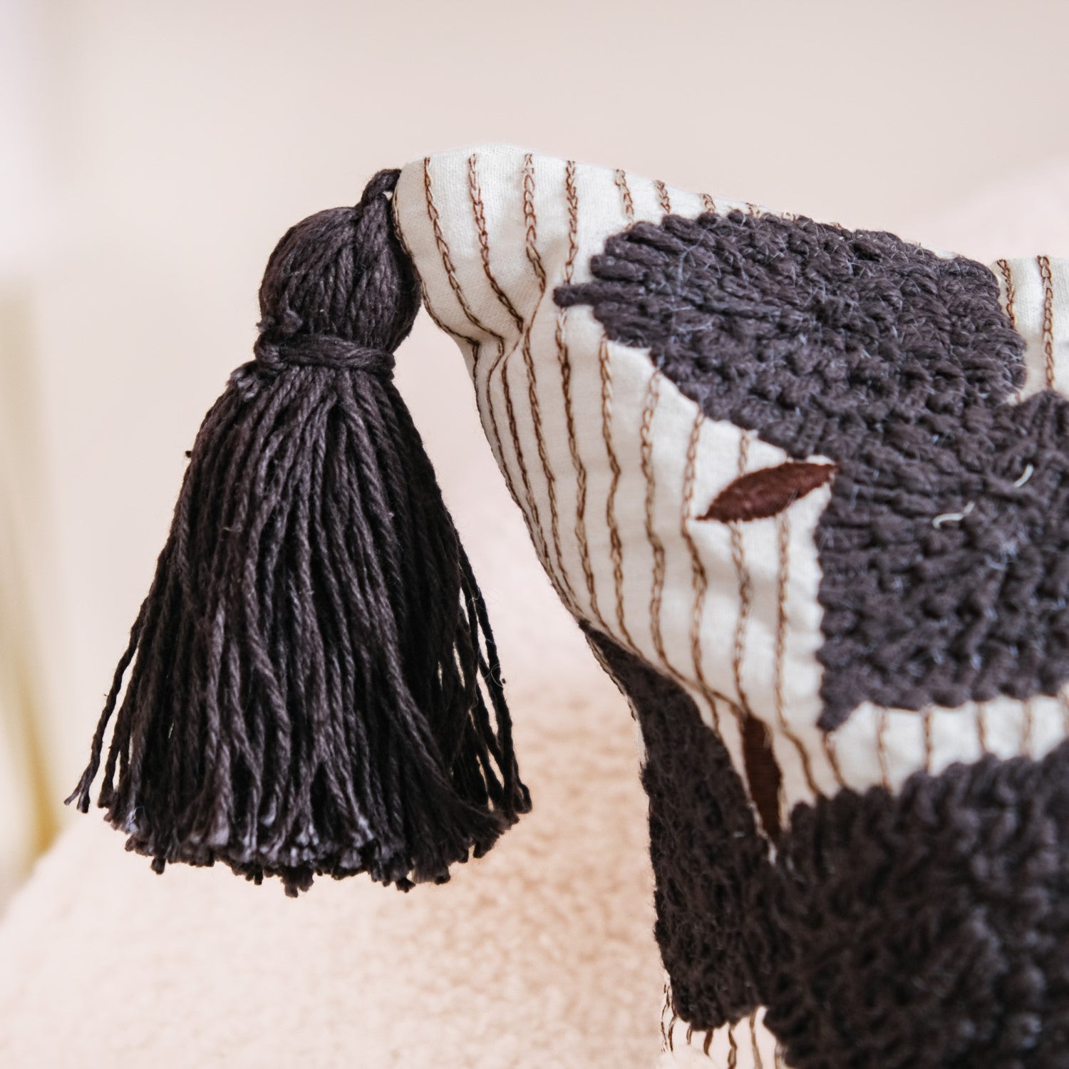 The cushion cover offers flexibility, allowing it to adorn a range of furniture styles like sofas, armchairs, and beds. Its refined aesthetics and careful artistry ensure it seamlessly enhances the allure of any seating or bedding arrangement.