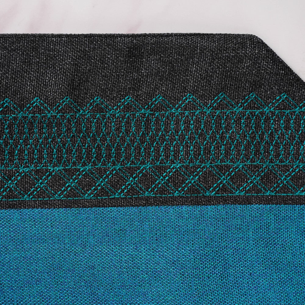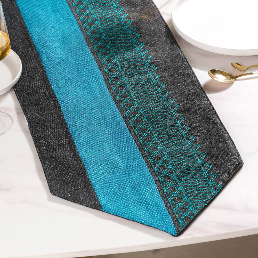 Embroidered Two Colour Jute Table Runner Blue Black 72 Inch