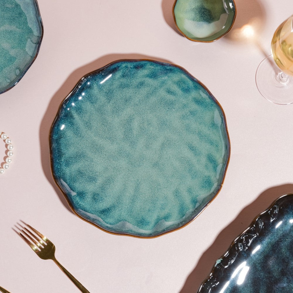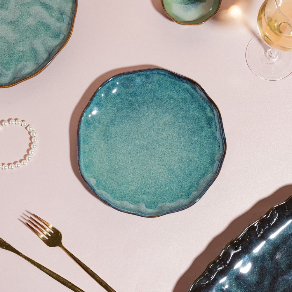 To care for a ceramic emerald dinner set, hand wash the dishes using warm, soapy water and a soft sponge. Avoid abrasive scrubbers and harsh chemicals. Gently remove food residues and avoid sudden temperature changes to prevent cracking. Store the dinnerware carefully to prevent chipping or scratching. Since the dinner set is dishwasher-safe, you can also safely put it inside the dishwasher for hassle-free cleaning.