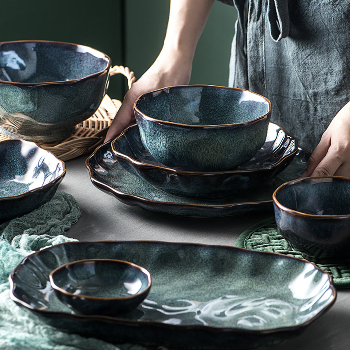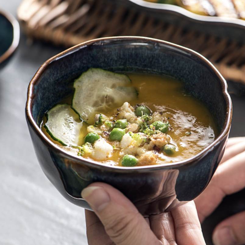 The ceramic bowl with a striking finish and unconventional design will look appealing on the dinner table. The brown rim of the bowl adds a rustic touch to the ceramicware. Pair it with the greenish-grey plate to complete the look.