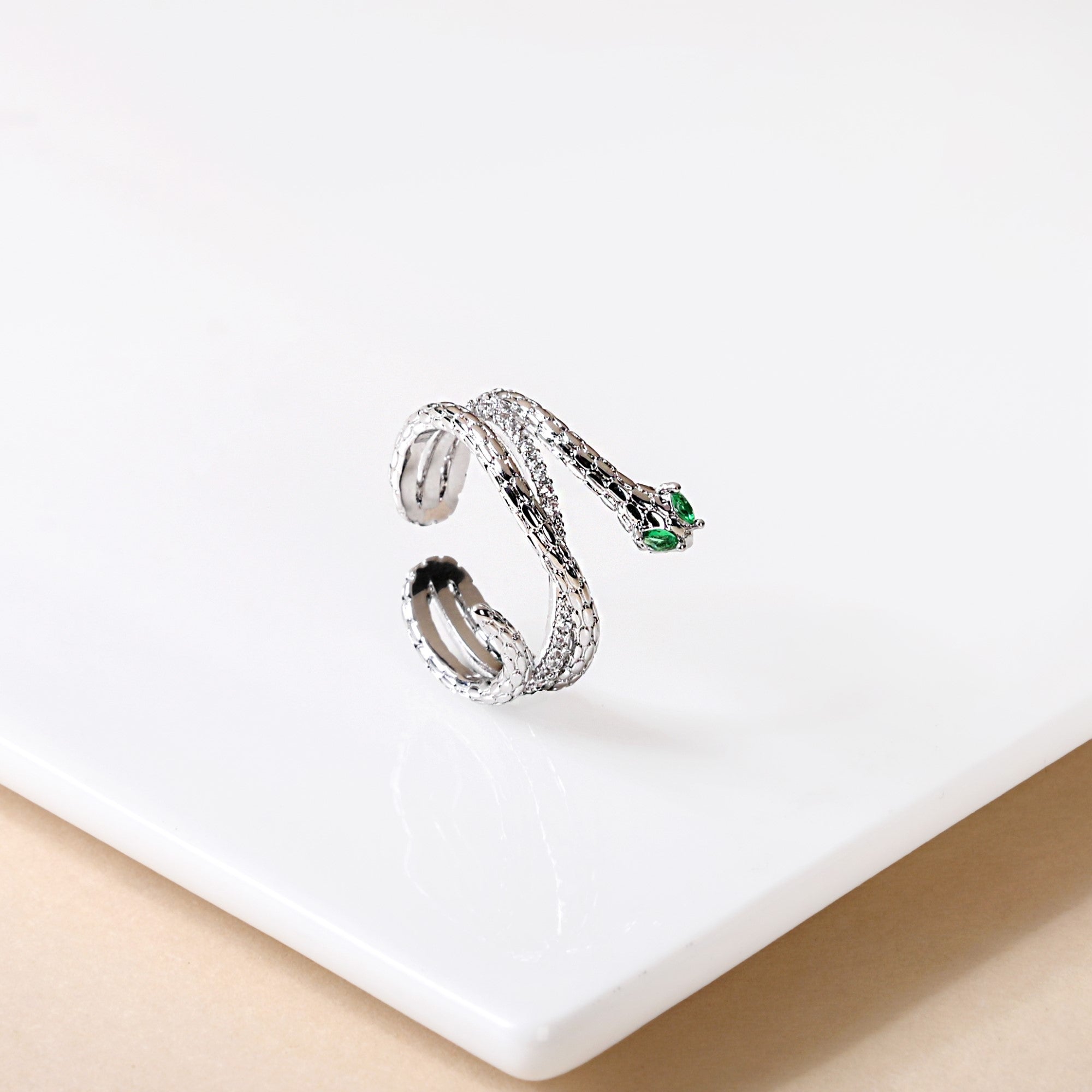 Nestyle: Channel your inner Medusa—pair this serpent ring with an all-black attire, a sleek leather jacket, and emerald-green heels for a fierce, spellbinding look!