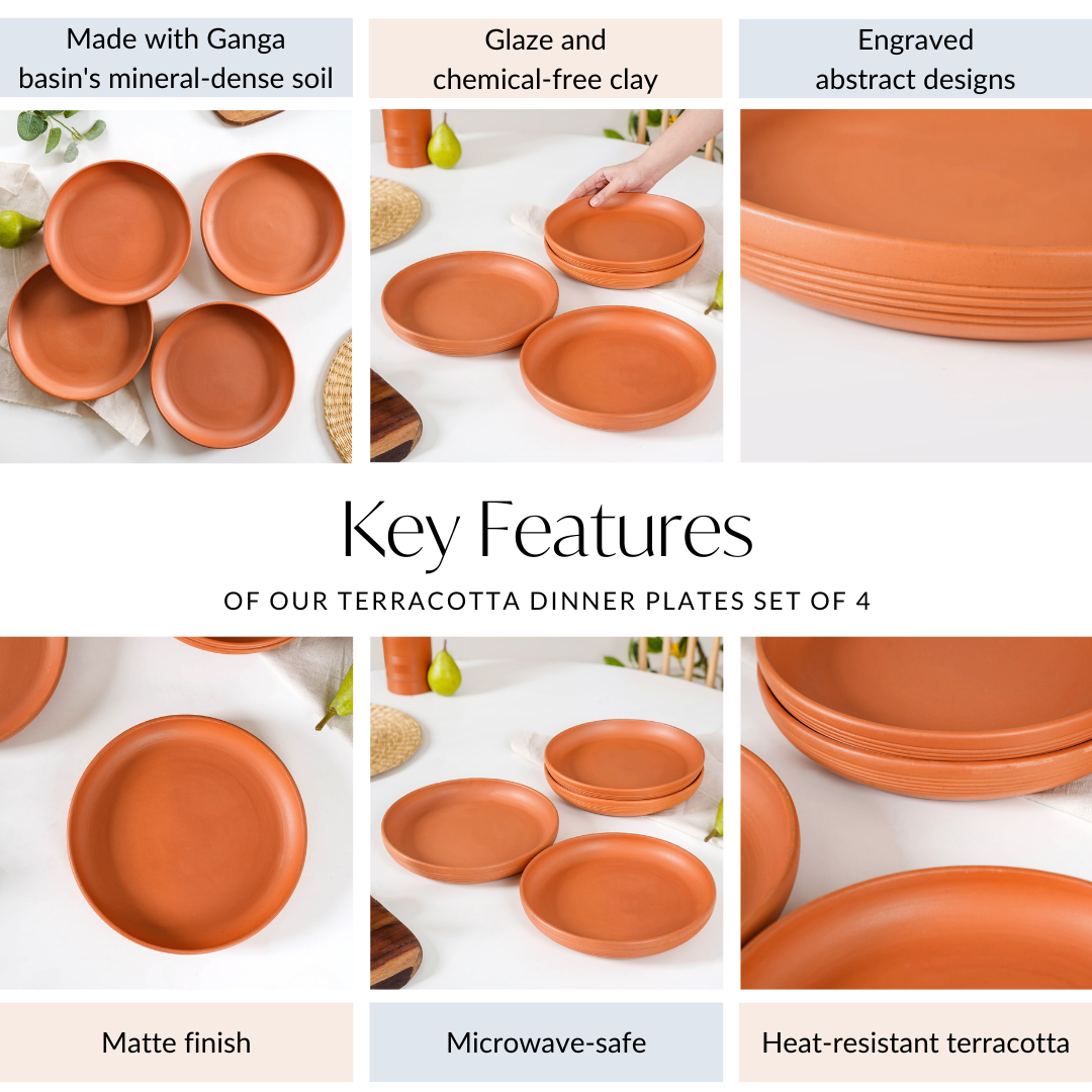 Engraved Terracotta Dinner Plates Set Of 4 9 Inch