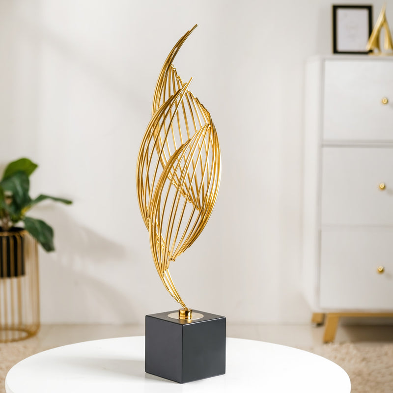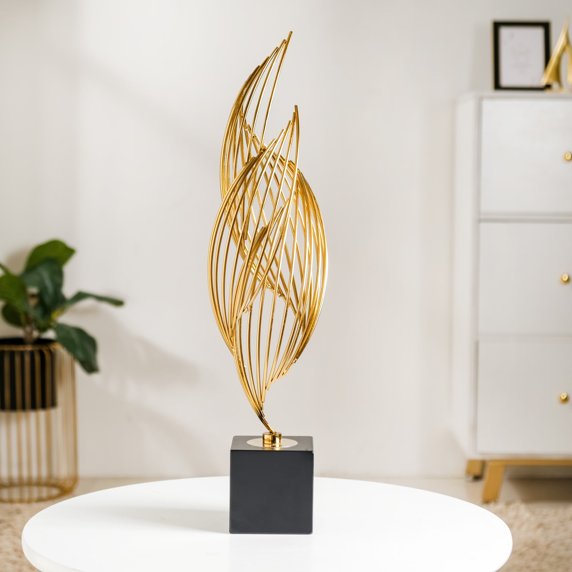 Bring home the fiery beauty of a raging flame with the gold and black metal sculpture that's expertly crafted from high-quality metal. The showpiece captures the bold and mesmerising beauty of dancing flames, thanks to its abstract gold twirl design. Golden wires are joined together to create the flame-inspired twirl design, exuding superb craftsmanship and a stunning aesthetic appeal. Use the decorative accent to add some glamour to your living space and experience the feel of a modern art gallery right at home. No matter where you place the metal showpiece, it is bound to be the centre of attention in any room decor.