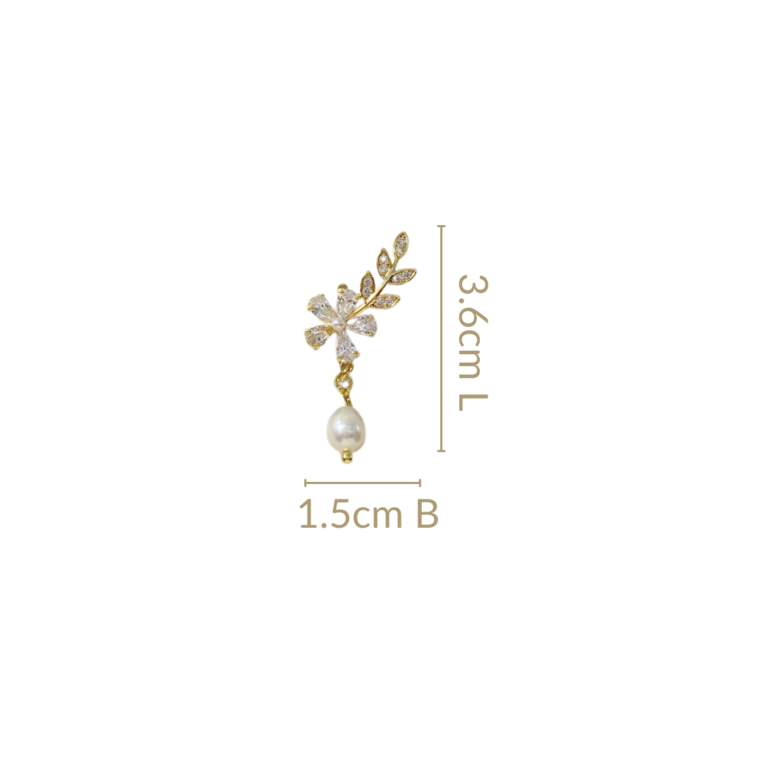 A delicate expression of elegance, these enchanting earrings bring a soft, graceful charm to any ensemble. Inspired by the gentle beauty of nature, the design features intricate floral and leaf accents, with a flowing chain adorned with luminous faux pearls. Subtle shimmering details and refined craftsmanship make them a perfect choice for any occasion. A must-have for those who adore dainty, nature-inspired jewellery!