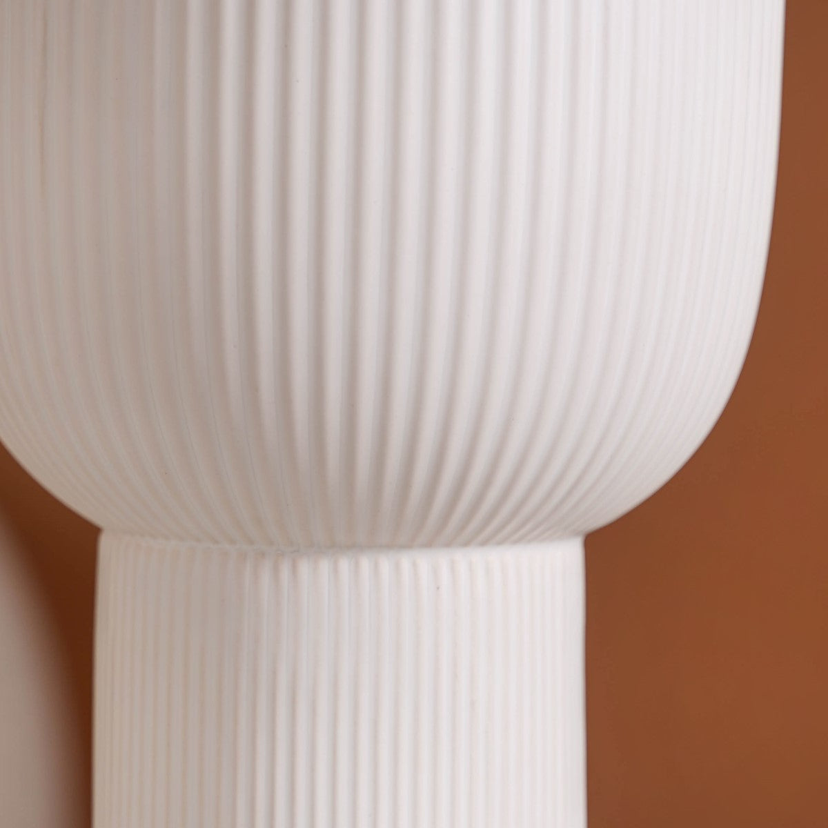 The unique flower vase boasts an abstract shape that adds a touch of modern artistry to your living space, making it a conversation starter wherever you place it. The white exterior exudes simplicity and grace, acting as the perfect vessel for your flowers, while the unique ribbed texture adds an intriguing tactile sensation, making it a versatile decor piece that complements a wide range of interior styles. Handcrafted with precision and care, this ceramic pot ensures both quality and durability, making it a lasting addition to your home. Beyond its aesthetic appeal, this vase serves as a functional piece for your flowers or other cherished decor possessions, combining beauty with utility.