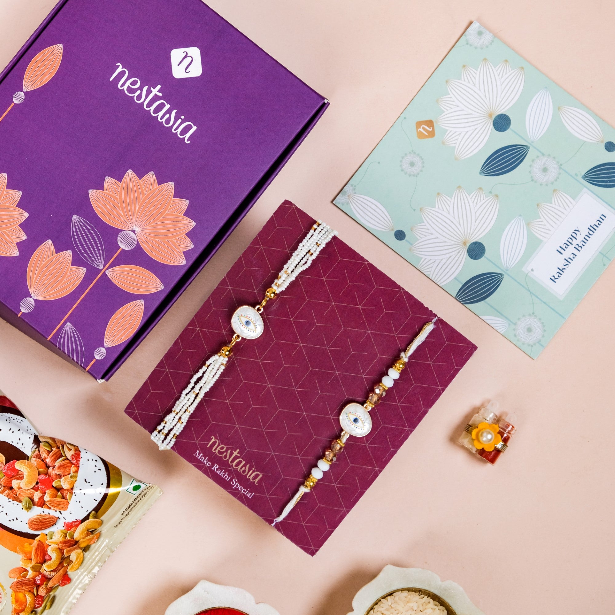 Evil Eye Protection White Rakhi Bracelet Gift Set