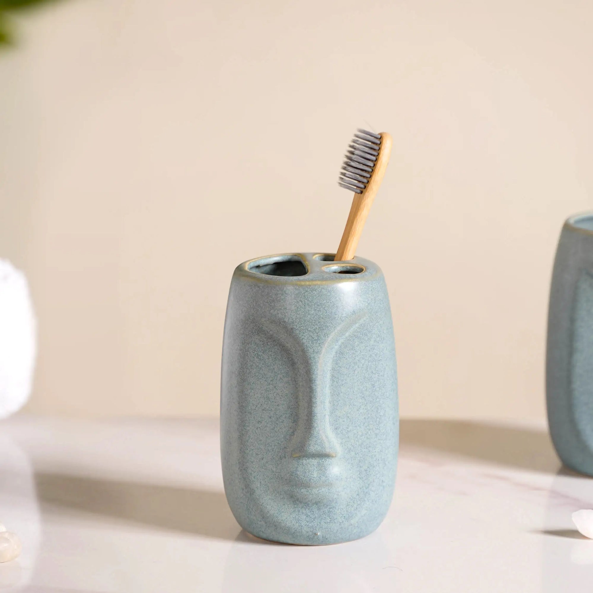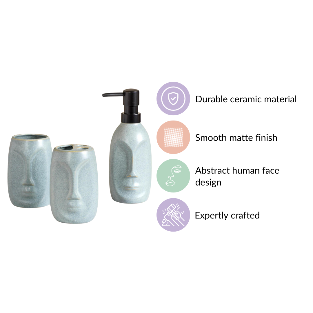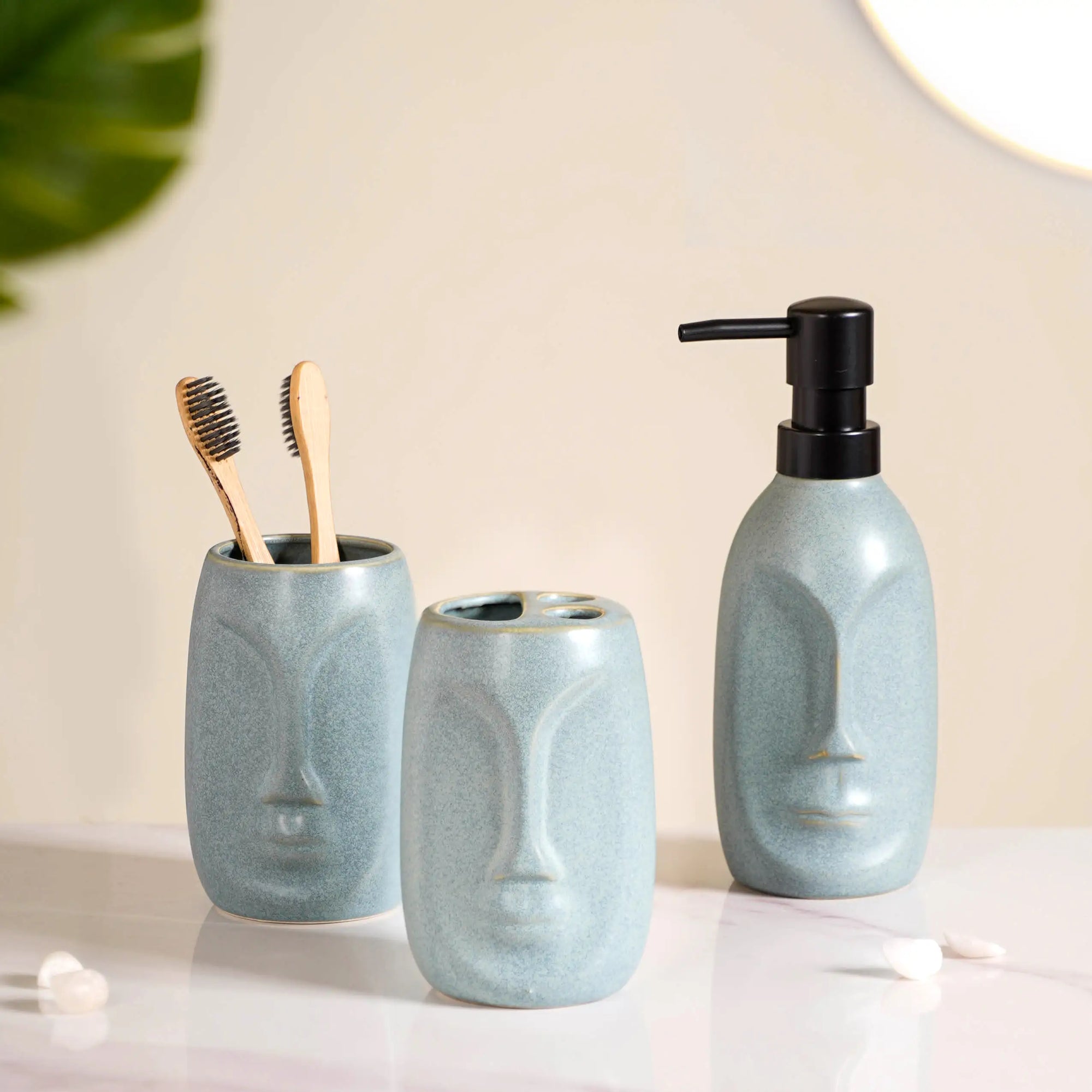 This ceramic bathroom set stands out due to its high-quality craftsmanship and unique design. The tranquil green hue and captivating abstract human face designs add an artistic and sophisticated touch to your bathroom decor. Additionally, the durability of the ceramic material ensures that these bathroom essentials will last for years.