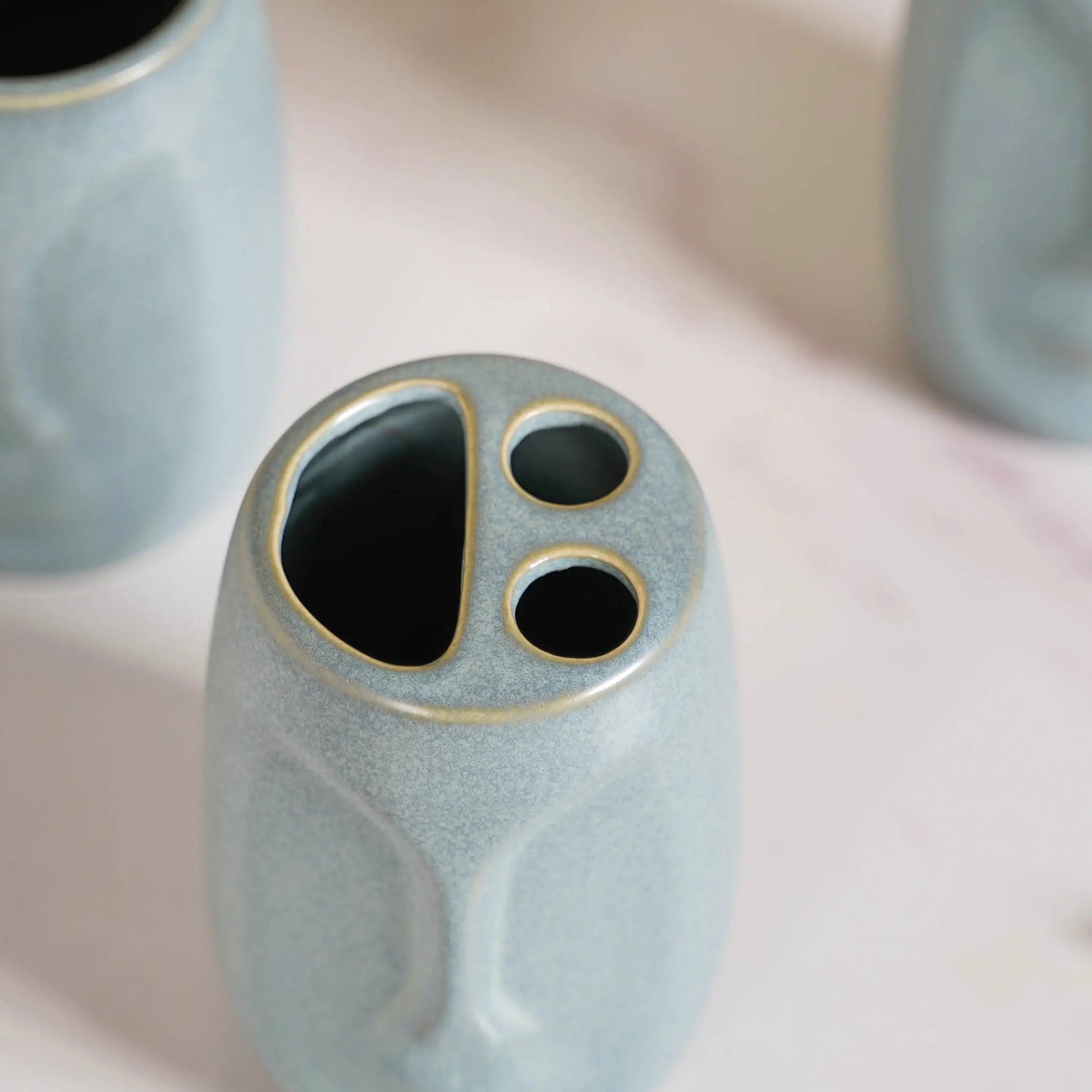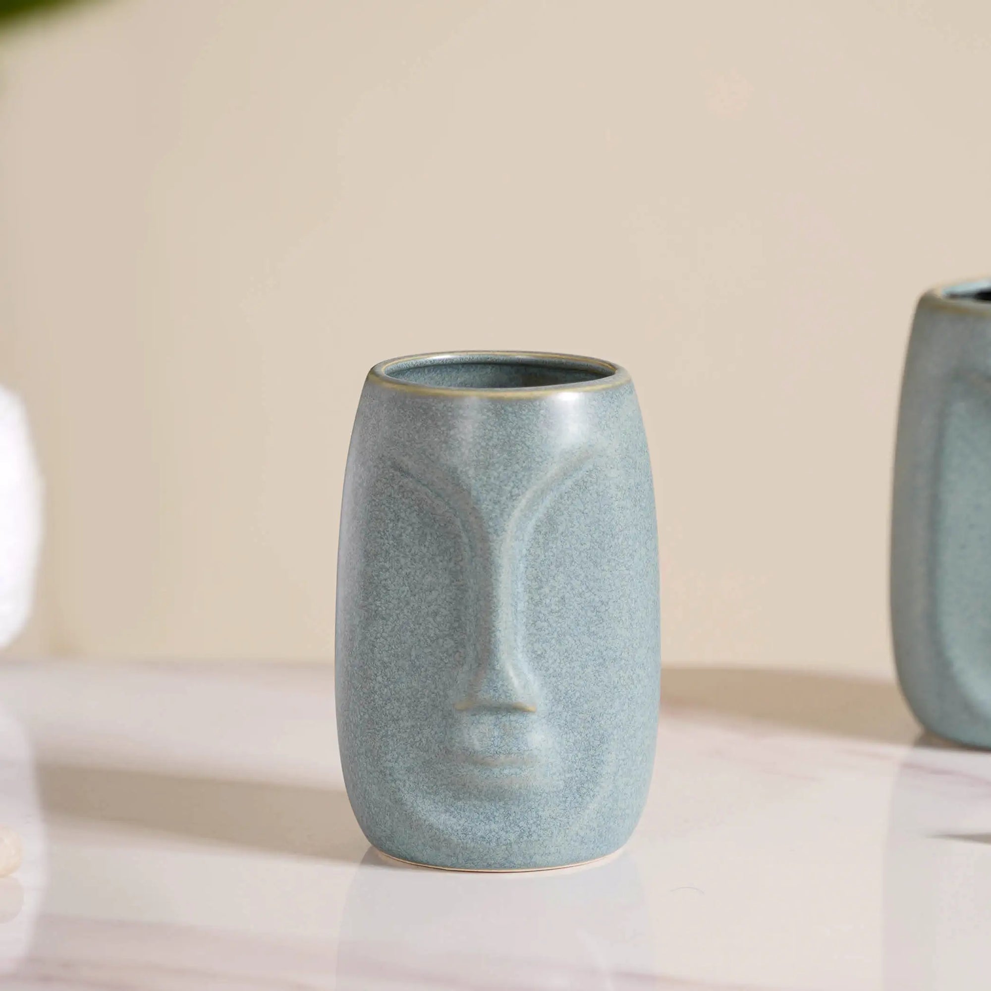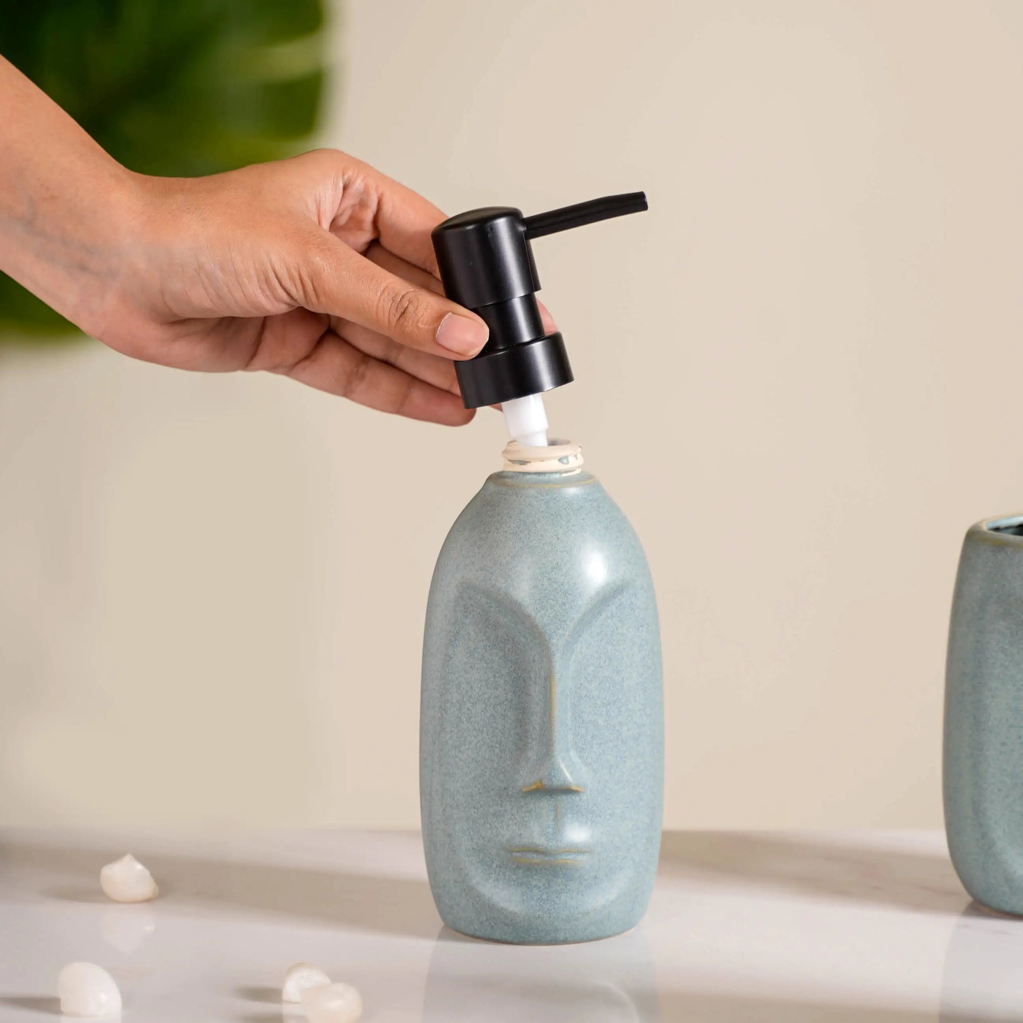 This ceramic bathroom set stands out due to its high-quality craftsmanship and unique design. The tranquil green hue and captivating abstract human face designs add an artistic and sophisticated touch to your bathroom decor. Additionally, the durability of the ceramic material ensures that these bathroom essentials will last for years.