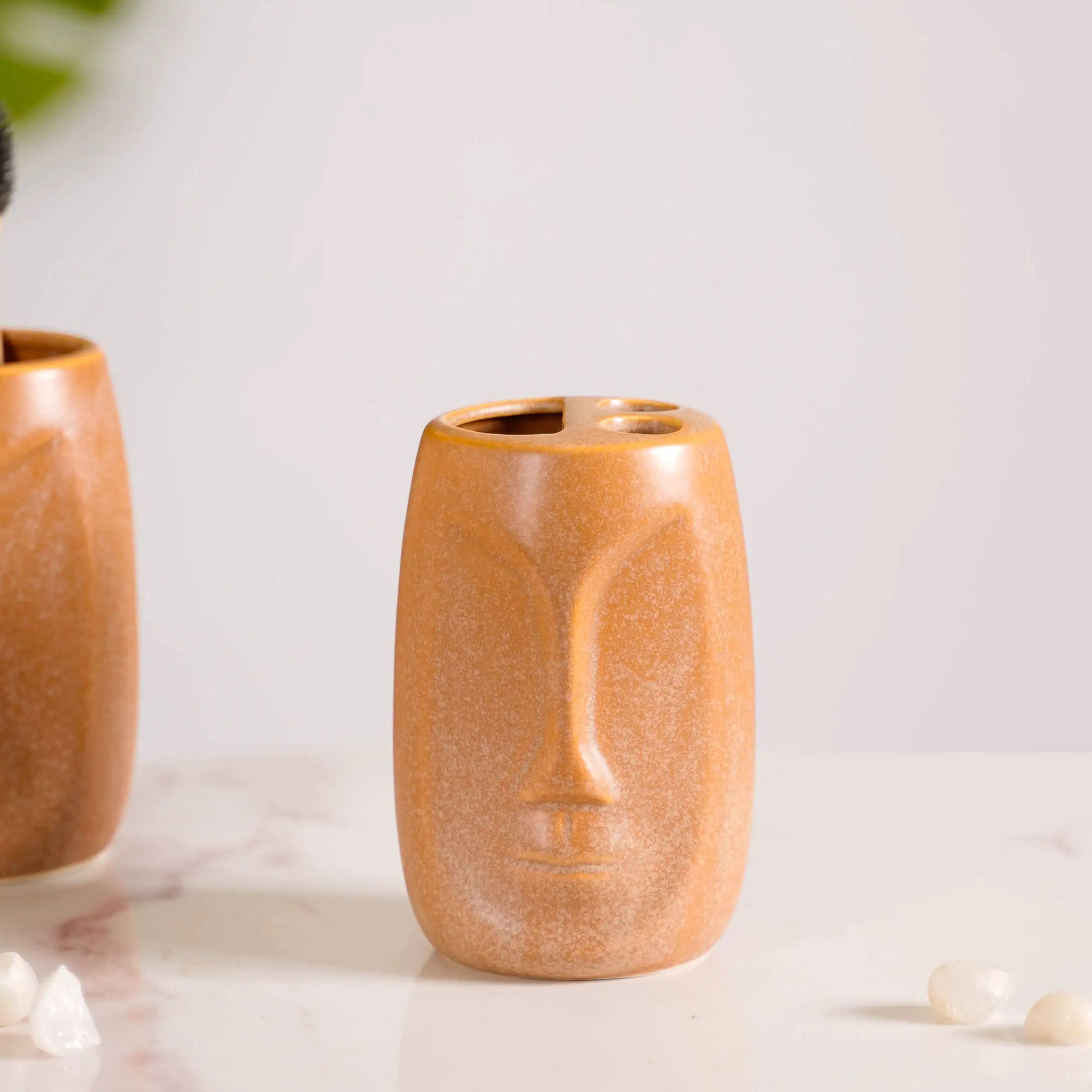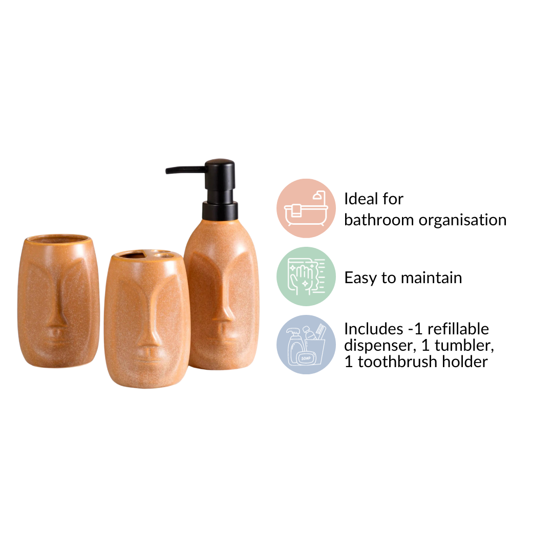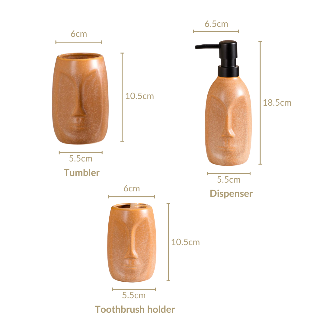 The artistic abstract human face design on these accessories adds a unique and sophisticated touch to your bathroom decor. It's a conversation starter and elevates the aesthetic appeal of your bathroom, turning it into a statement space.