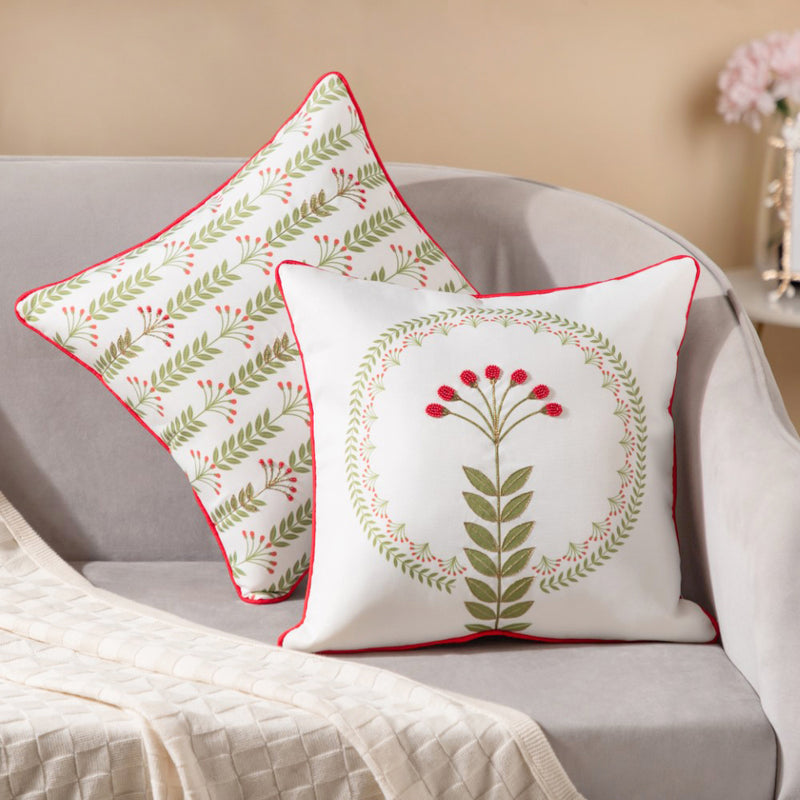 The contemporary cushion cover set of 2 features a minimalist design of traditional artwork, given a luxurious touch by the use of zari and vibrant coloured beads. 16 inch cushion covers are ideal for sofas and couches and these designer cushion covers can undoubtedly stand out amongst the cushion covers online for their intricate designs and implementation of zari. The covers are embellished by the addition of beads and hence, can be a great gift for housewarmings, anniversaries, Thanksgiving, wedding, Mother's day or Father's day, or baby showers.