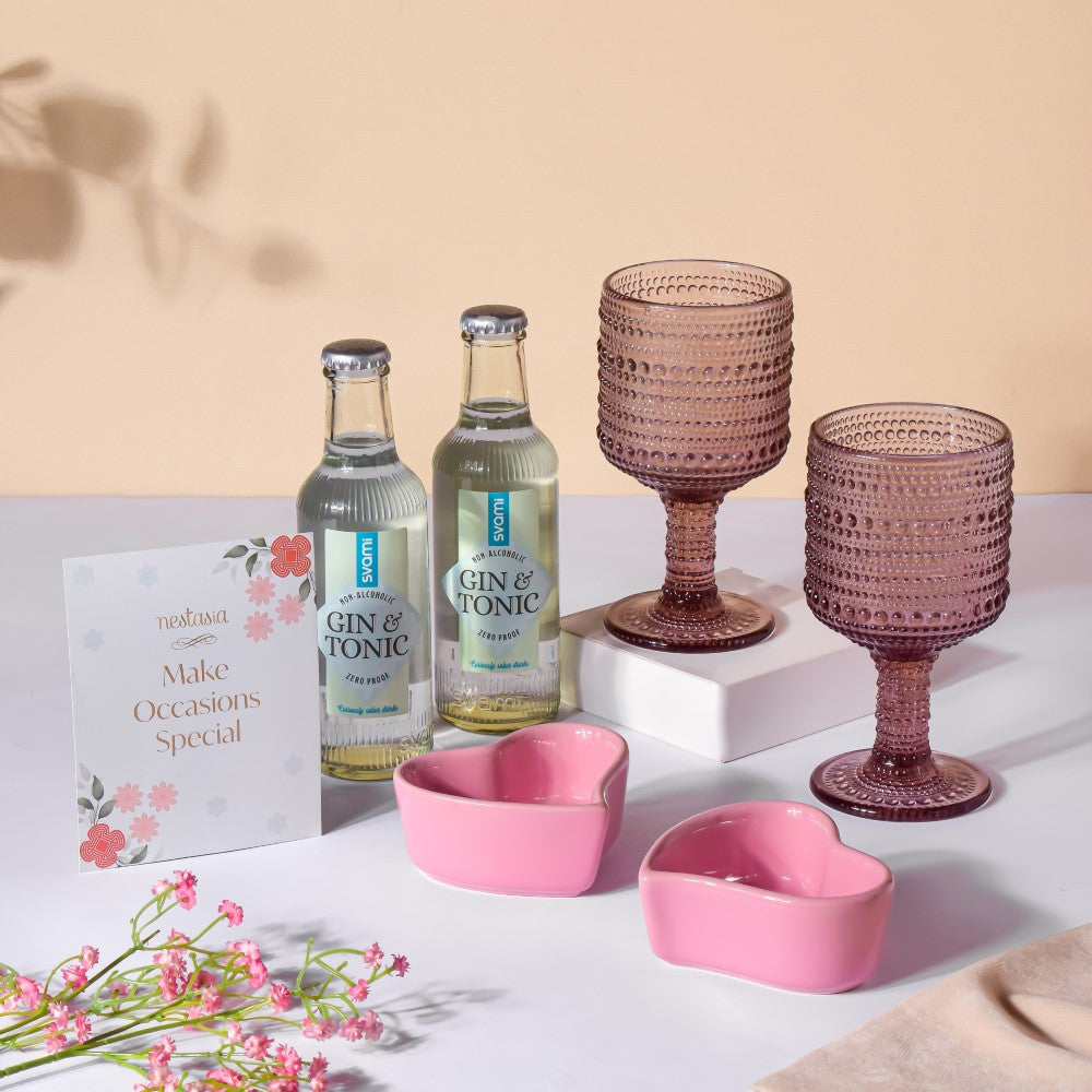Nestip: The glassware set from the wedding hamper can be used as a table decor or to serve drinks and refreshments to guests.