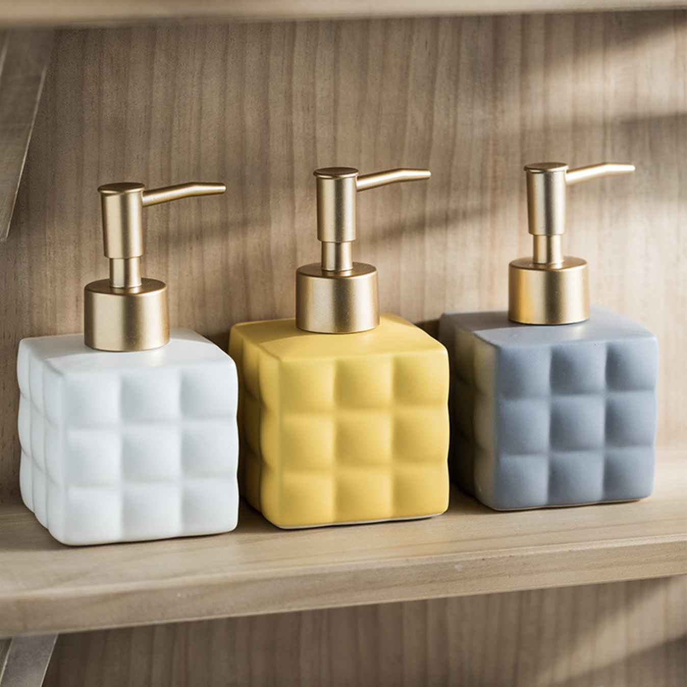 With a beautiful finish that goes with just about any decor, the elegant soap dispensers can also be used as lotion dispensers or sanitizer dispensers as well. The ceramic dispenser has a non-porous composition that makes it sturdy and worthy of use on a regular basis. The size of the dispensers makes them suitable to be stored on the bathroom shelves or bathroom and kitchen counters. Bathroom accessories such as dispensers, soap dishes, tumblers, and toothbrush holders can make one of the easiest ways of giving the bathroom space a makeover. The easy-to-use dispenser features a quirky texture that adds to it the glam factor!